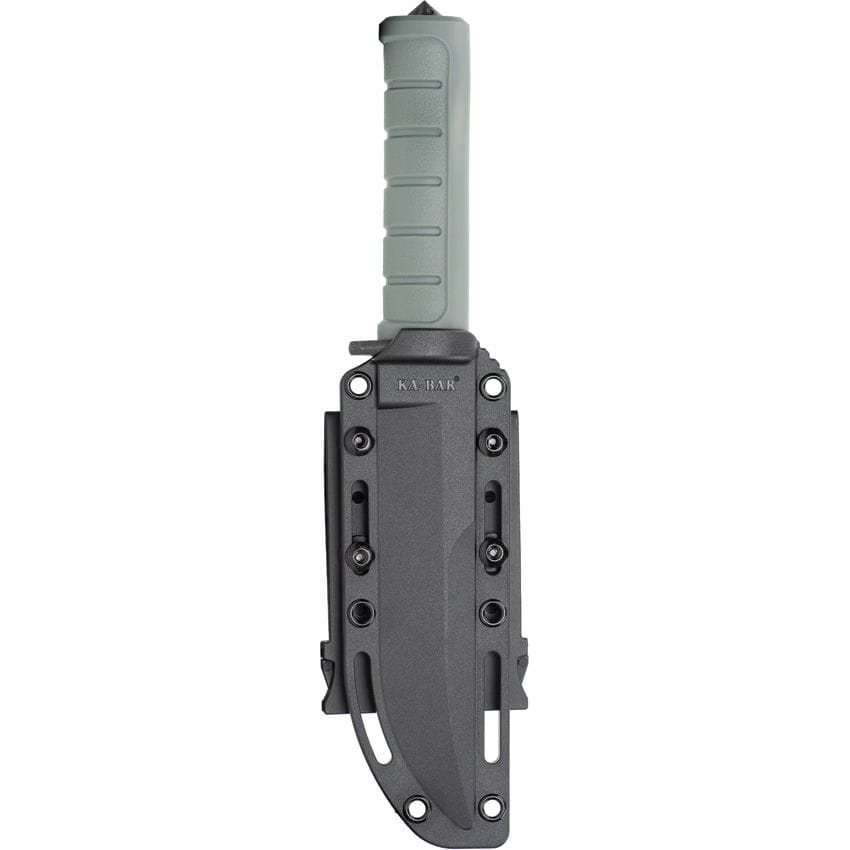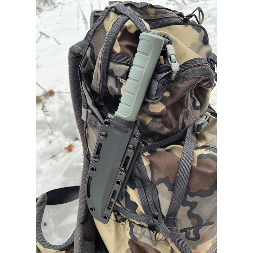 Robusto coltello con lama fissa progettato per utenti esigenti. La lama con filo liscio è realizzata in resistente acciaio per utensili D2 con superficie verniciata a polvere nera che ne migliora la resistenza meccanica. Il manico con superficie antiscivolo è realizzato in GFN, un nylon rinforzato con fibra di vetro. La parte anteriore dell'impugnatura è dotata di una protezione, mentre nella parte posteriore è presente una punta utilizzabile per rompere il vetro in modo sicuro o per l'autodifesa improvvisata. Il coltello è dotato di un fodero da cintura compatibile con il sistema modulare MOLLE/PALS. Il prodotto può quindi essere facilmente fissato a tutta una serie di attrezzature tattiche compatibili, come zaini, chest rig, portapannelli, ecc.
