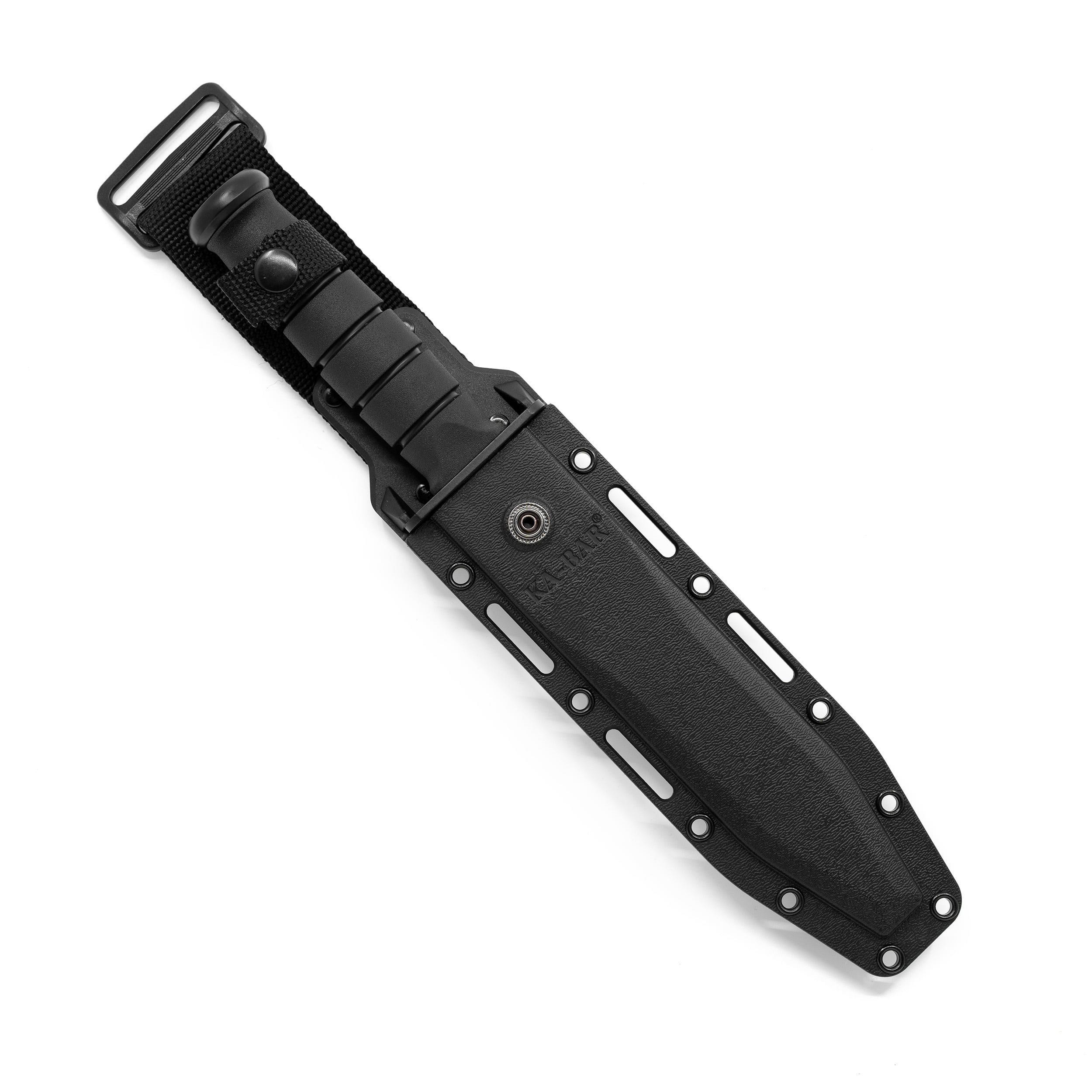 Lama combinata - lama parzialmente seghettata. Lama nera (rivestita in resina epossidica). Tipo di acciaio: acciaio al carbonio 1095. Impugnatura in materiale Kraton G. Lunghezza lama: 20 cm. Lunghezza totale: 32 cm. Fodero in cordura nera. Ulteriori informazioni