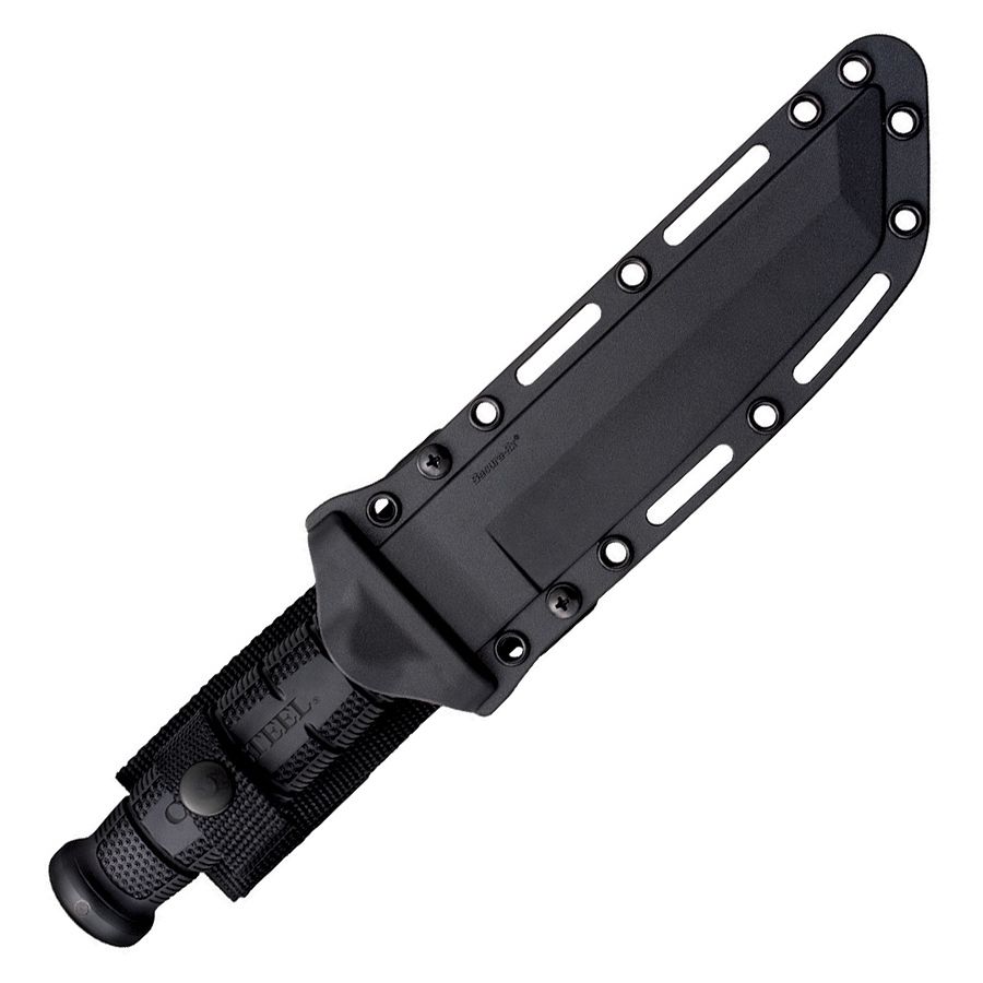 Il coltello Cold Steel Leatherneck presenta una lama di tipo tanto di quasi 18 cm in acciaio inossidabile tedesco D2 con rivestimento nero. Il manico è realizzato in un materiale antiscivolo denominato Griv-ExTM.