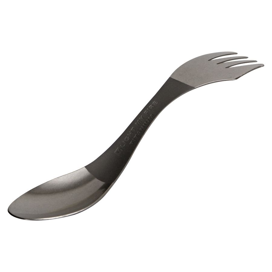 Cucchiaio, forchetta e coltello in un unico strumento (il coltello è integrato nella forchetta). Realizzato in titanio, materiale resistente e leggero. Dimensioni: 170 x 39 x 20 mm, peso: 20 g. Ulteriori informazioni