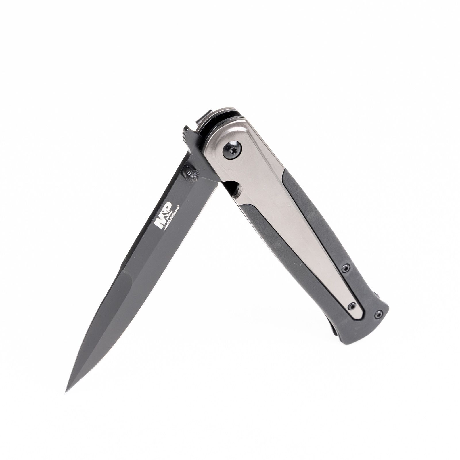 Coltello pieghevole Smith & Wesson 1085898 con lama in acciaio inossidabile brunito. Il manico è realizzato in una combinazione di acciaio inossidabile e nylon. Il coltello è dotato di blocco LinerLock e clip. Lunghezza del coltello circa 215 mm. Ulteriori informazioni