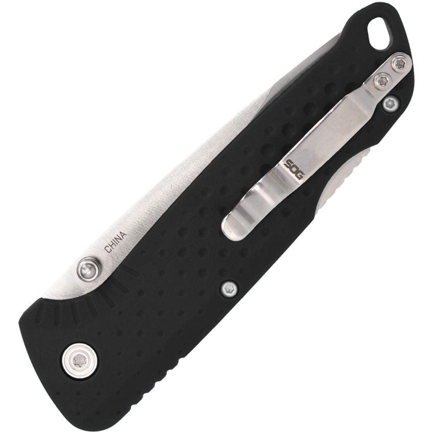 Coltello pieghevole versatile con lama in acciaio temprato a freddo. La lama con filo liscio è realizzata in acciaio inossidabile CRYO 5Cr15MoV modificato. Per aprire facilmente la lama, è possibile utilizzare il perno bilaterale nella parte superiore della lama. Una volta aperto, il coltello è bloccato da un affidabile fermo di sicurezza di tipo Backlock, il cui meccanismo di comando si trova nella parte posteriore del manico. Per la produzione dei manici è stato utilizzato nylon rinforzato con fibra di vetro (GRN) estremamente resistente, completato da una delicata finitura antiscivolo della superficie per una presa salda in condizioni difficili. Naturalmente è presente un foro per il passaggio del cordino di sicurezza e una clip da tasca in metallo rimovibile.
