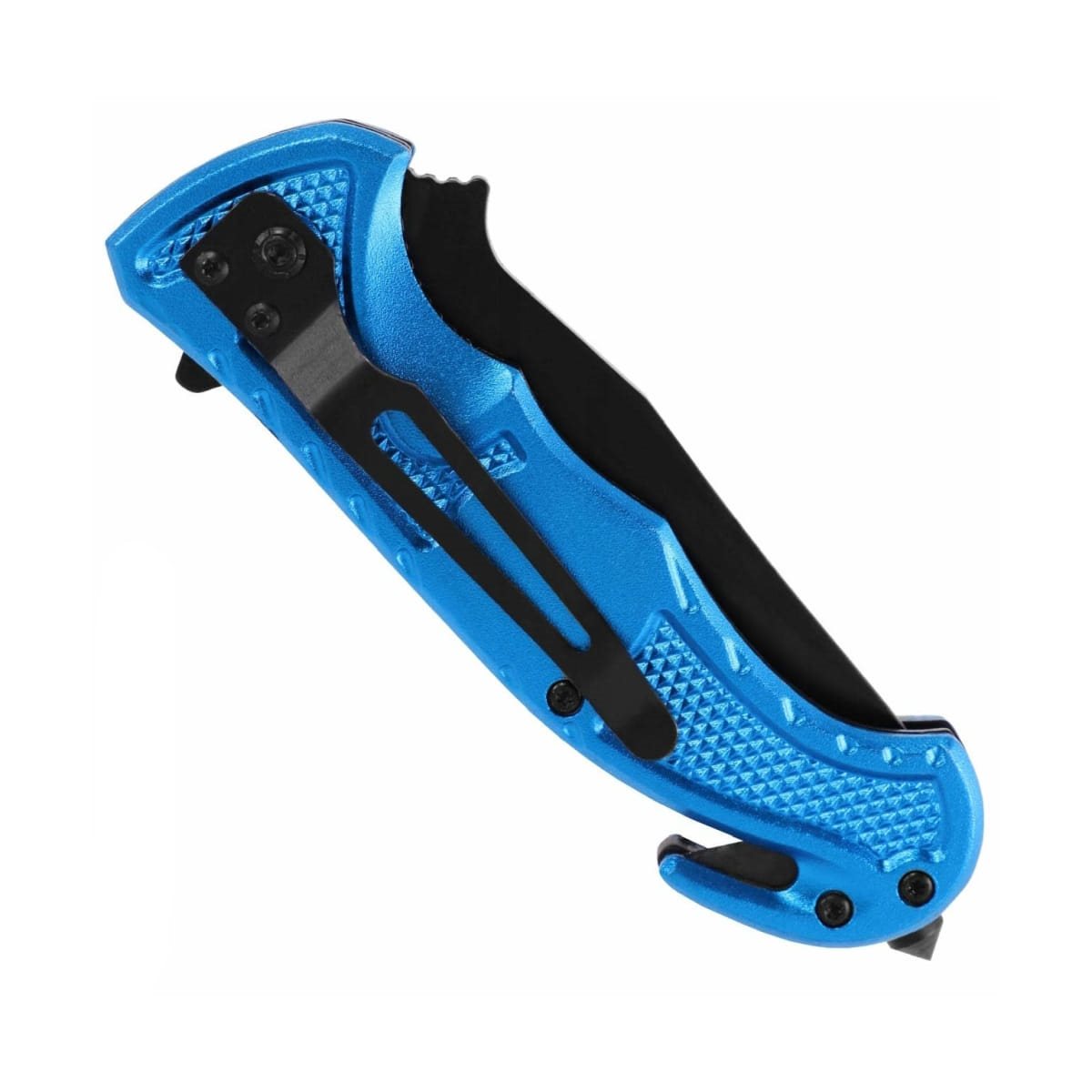 Coltello pieghevole con clip e taglierina RESCUE EMS BLU