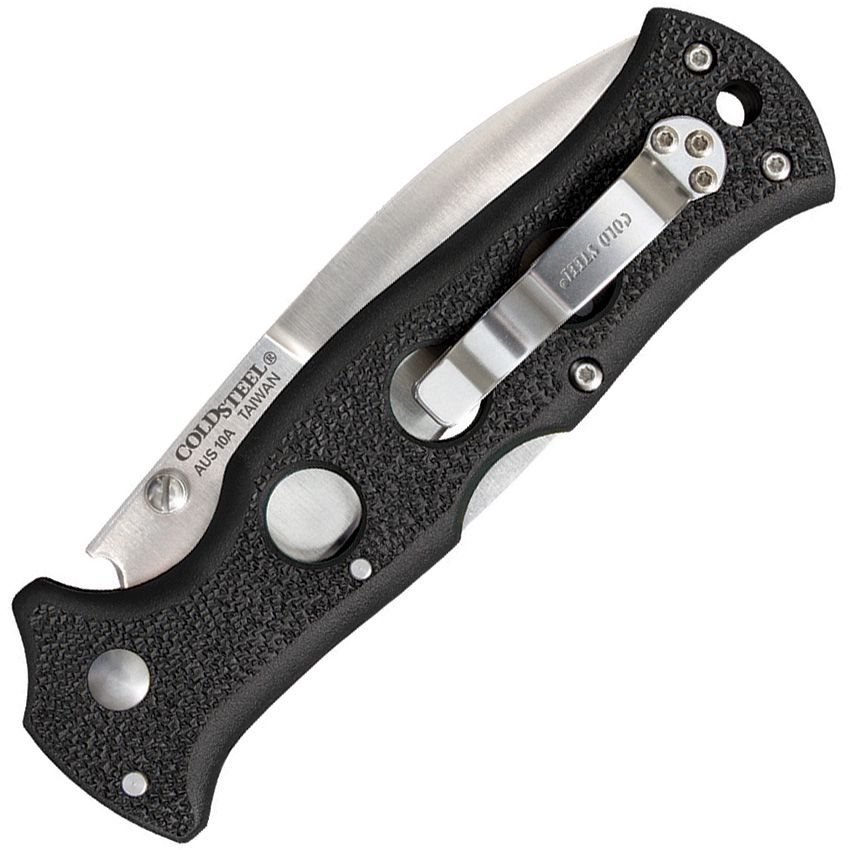 Pratico coltello a serramanico adatto per il trasporto EDC. La lama con filo liscio è realizzata in acciaio inossidabile giapponese AUS-10A di alta qualità e presenta una punta a forma di spear point. Nella parte superiore è presente un falso filo e un pratico perno per una facile apertura con una sola mano. Quando è aperto, il coltello è bloccato da un affidabile sistema di sicurezza brevettato Tri-Ad Lock™, i cui comandi si trovano sul dorso del manico. Il manico del coltello è rinforzato con inserti in alluminio trattato termicamente, mentre i pomelli sono realizzati in Griv-Ex™. Questo materiale è molto simile allo Zytel, si tratta essenzialmente di una plastica estremamente resistente. Naturalmente è presente una clip metallica da cintura, che può essere facilmente fissata sia sul lato sinistro che su quello destro.