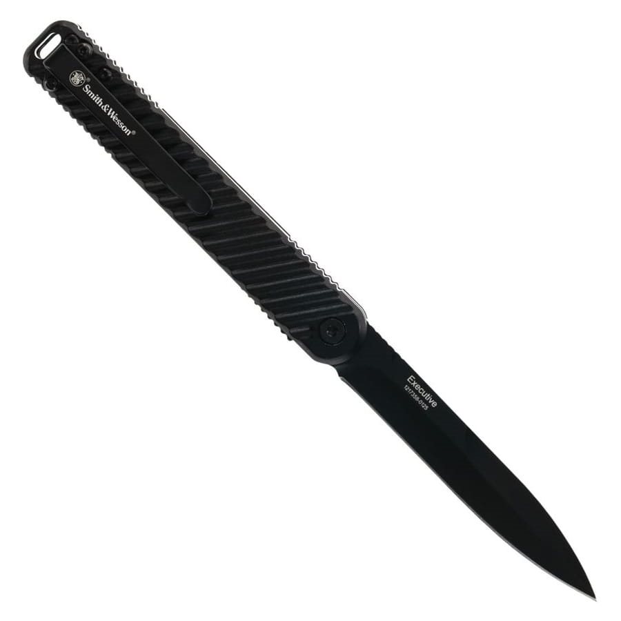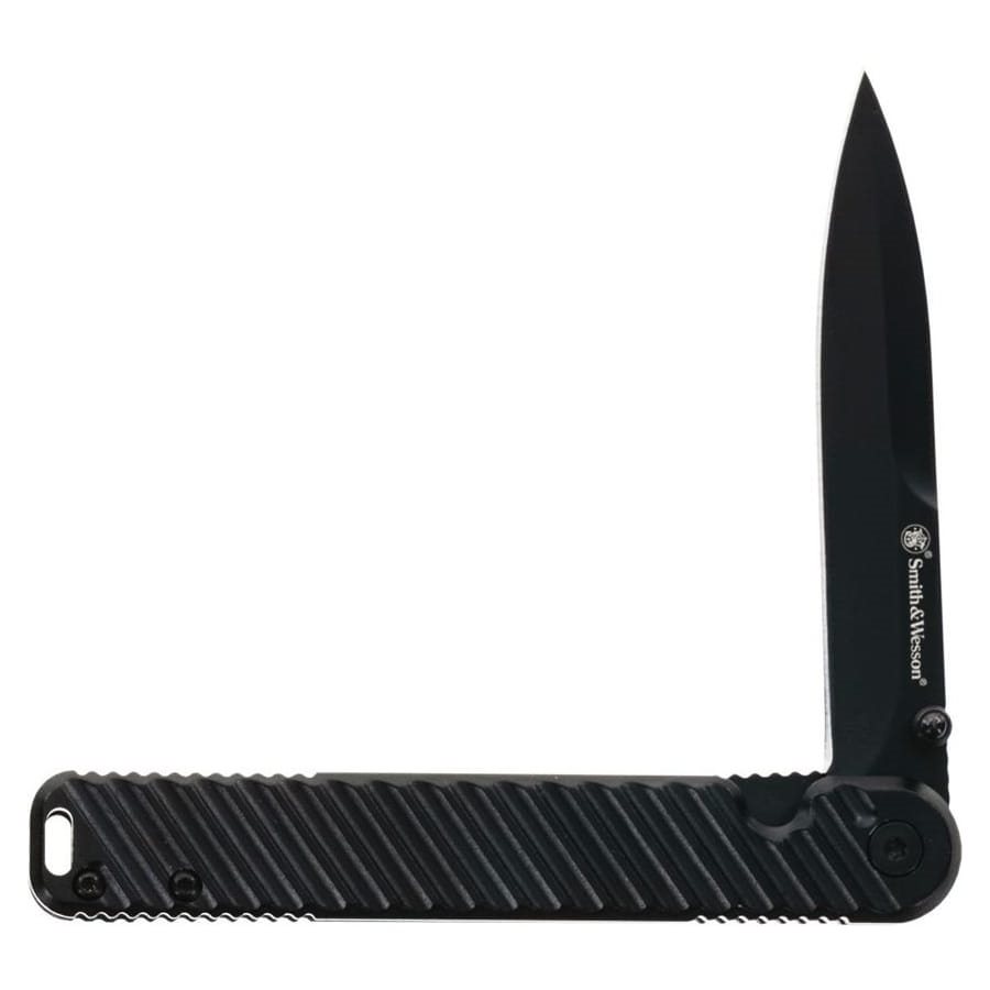 Coltello EDC compatto e raffinato con struttura interamente nera. La lama relativamente sottile a forma di spear point è realizzata in acciaio inossidabile 7CR, mentre nella parte superiore è presente un perno bilaterale per una facile apertura con una sola mano. Quando è aperto, il coltello è bloccato da una chiusura di sicurezza di tipo Linerlock. Il manico è dritto e le guancette sono realizzate in alluminio con texture antiscivolo. All'estremità del manico si trova un foro per il passaggio del cordino di sicurezza e una clip da tasca in metallo.