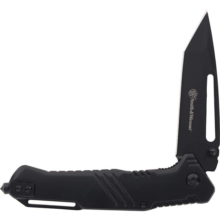 Coltello a serramanico completamente nero dall'aspetto tattico. La lama a forma di tanto è caratterizzata da una punta estremamente affilata ed è stata realizzata in resistente acciaio inossidabile con rivestimento nero. Quando è aperto, il coltello è bloccato da un sistema di sicurezza LinerLock collaudato nel tempo. Per un'apertura confortevole, è possibile utilizzare il solido anello per l'unghia, il perno su entrambi i lati o il flipper. Il manico in alluminio è leggermente ricurvo e alla sua estremità si trova un foro per il cordino di sicurezza e un rompivetro di emergenza. Naturalmente è presente anche una clip da tasca in metallo.