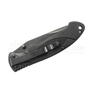 Coltello pieghevole Smith & Wesson SWA25 ExtremeOps con lama in acciaio inossidabile 7Cr17 temprato nero con durezza 56 - 58 HRC. Il manico è in gomma antiscivolo, anch'esso di colore nero. Il coltello è dotato di un blocco linerlock e di una clip per il trasporto alla cintura o ai pantaloni. Ideale per l'uso quotidiano.