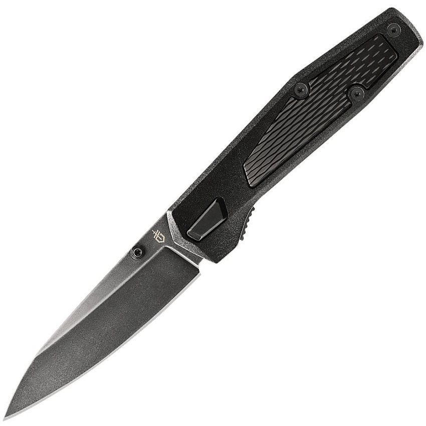Coltello tascabile universale con chiusura a scatto, interamente nero. La lama a goccia con tagliente liscio è realizzata in acciaio inossidabile 7Cr con finitura stonewash nera. Il perno bilaterale sulla lama consente una facile apertura sia con la mano destra che con la sinistra. In posizione aperta, la lama è bloccata dal più diffuso sistema di sicurezza Liner Lock, il cui pulsante sporge leggermente dal profilo del manico per una facile manipolazione anche con i guanti. I manici del coltello sono realizzati in nylon rinforzato con fibra di vetro. Il manico è dotato di una clip metallica dello stesso colore della lama per un comodo trasporto in tasca.