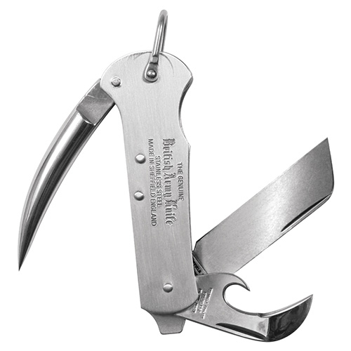Coltello originale dell'esercito britannico. Il coltello è dotato di apriscatole, lama larga, punta, cacciavite, passante per appenderlo o cordino di sicurezza per evitare di perderlo. Materiale: acciaio inossidabile. Ulteriori informazioni