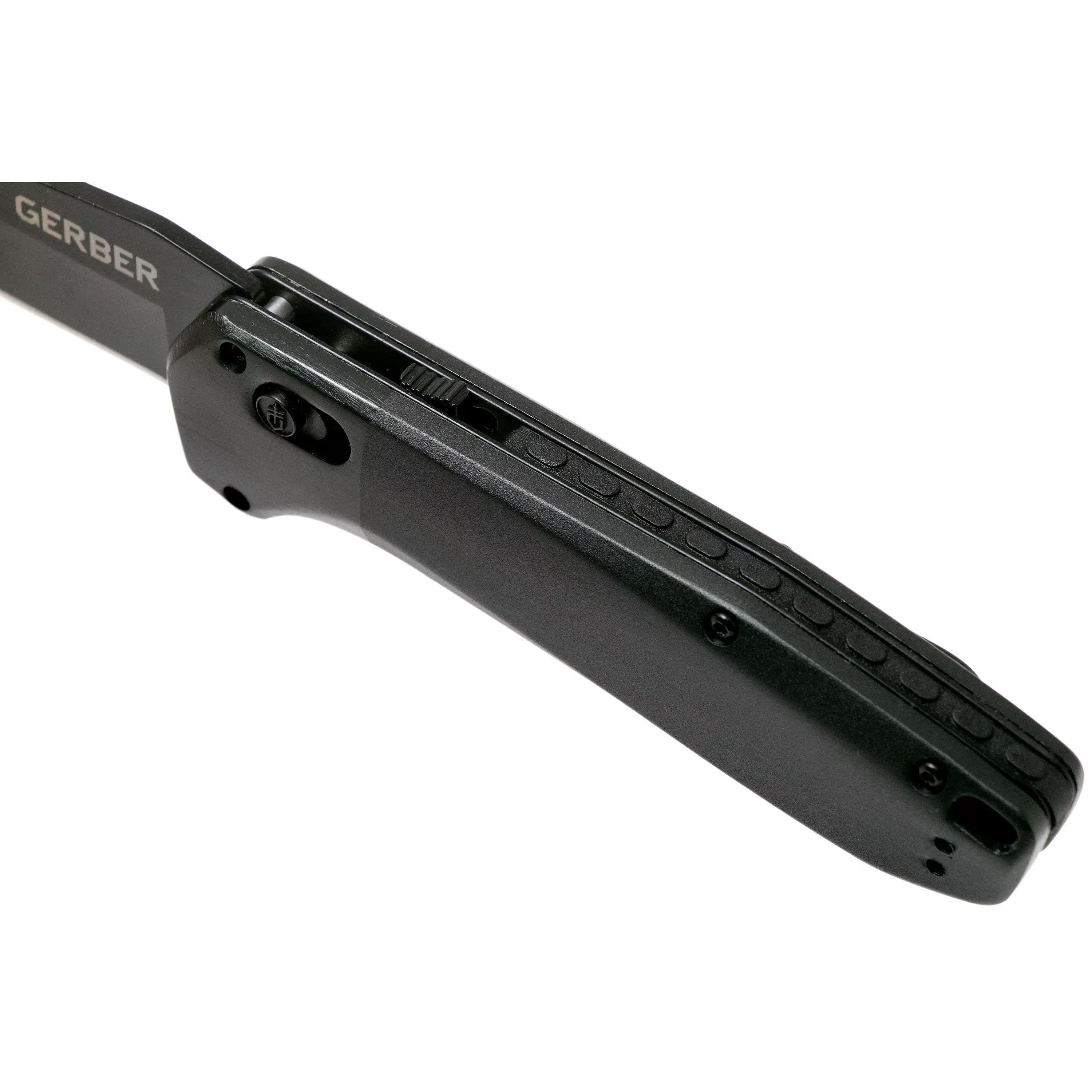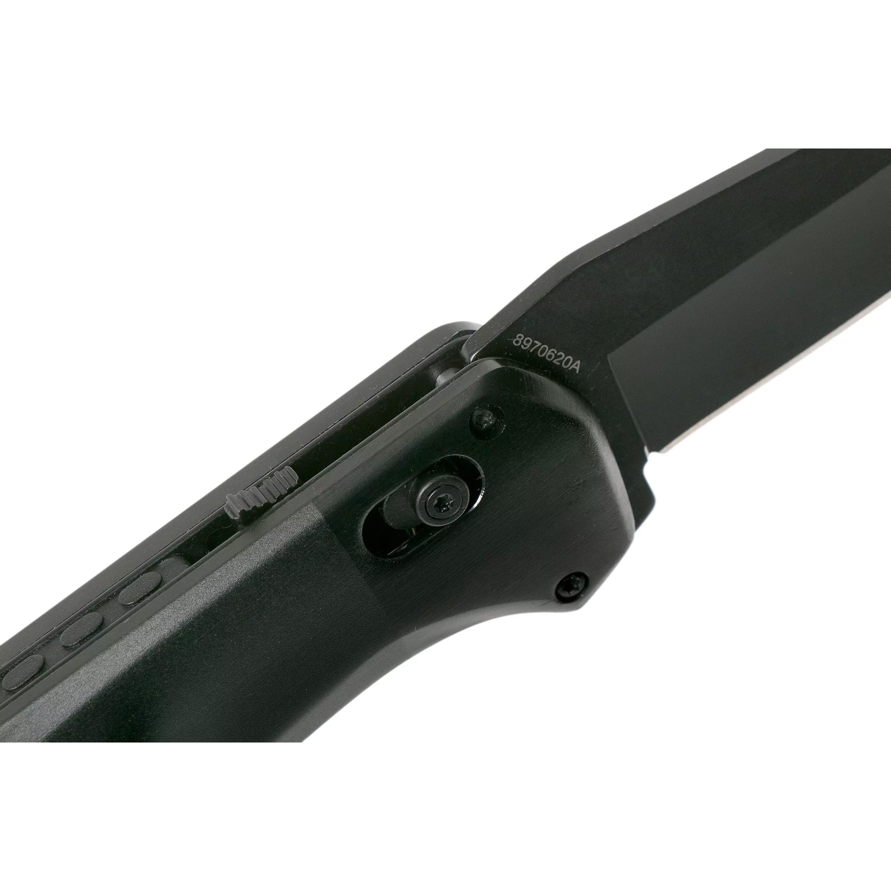 Coltello pieghevole con apertura assistita. La lama nera con filo liscio è realizzata in acciaio inossidabile 7Cr17MoV e, quando aperta, è bloccata tramite il sistema di sicurezza Pivotlock. Per aprire rapidamente la lama è possibile utilizzare il flipper. I manici sono realizzati in alluminio in due tonalità di nero e all'estremità è presente un foro per il passaggio del cordino di sicurezza. Naturalmente è presente anche una clip da tasca in metallo che può essere installata sia sul lato sinistro che su quello destro.