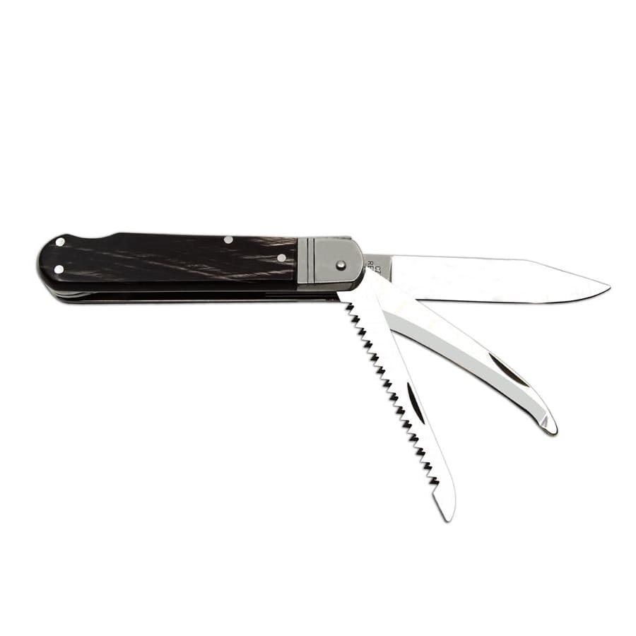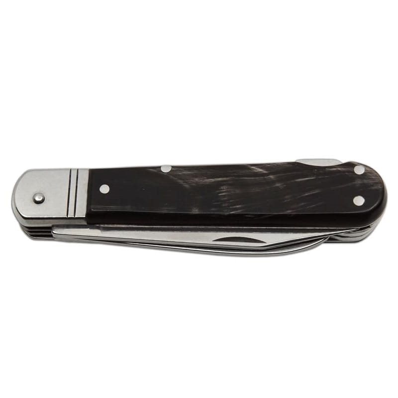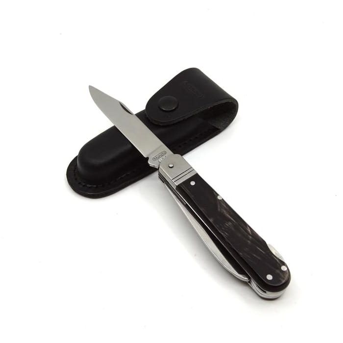 Materiale della lama: acciaio inossidabile 440 A. Materiale del manico: corno di bufalo. Lunghezza del prodotto: 106 mm. Lunghezza della lama: 80 mm. Larghezza della lama: 15 mm. Peso del prodotto: 140 g. Custodia: custodia in pelle. Ulteriori informazioni