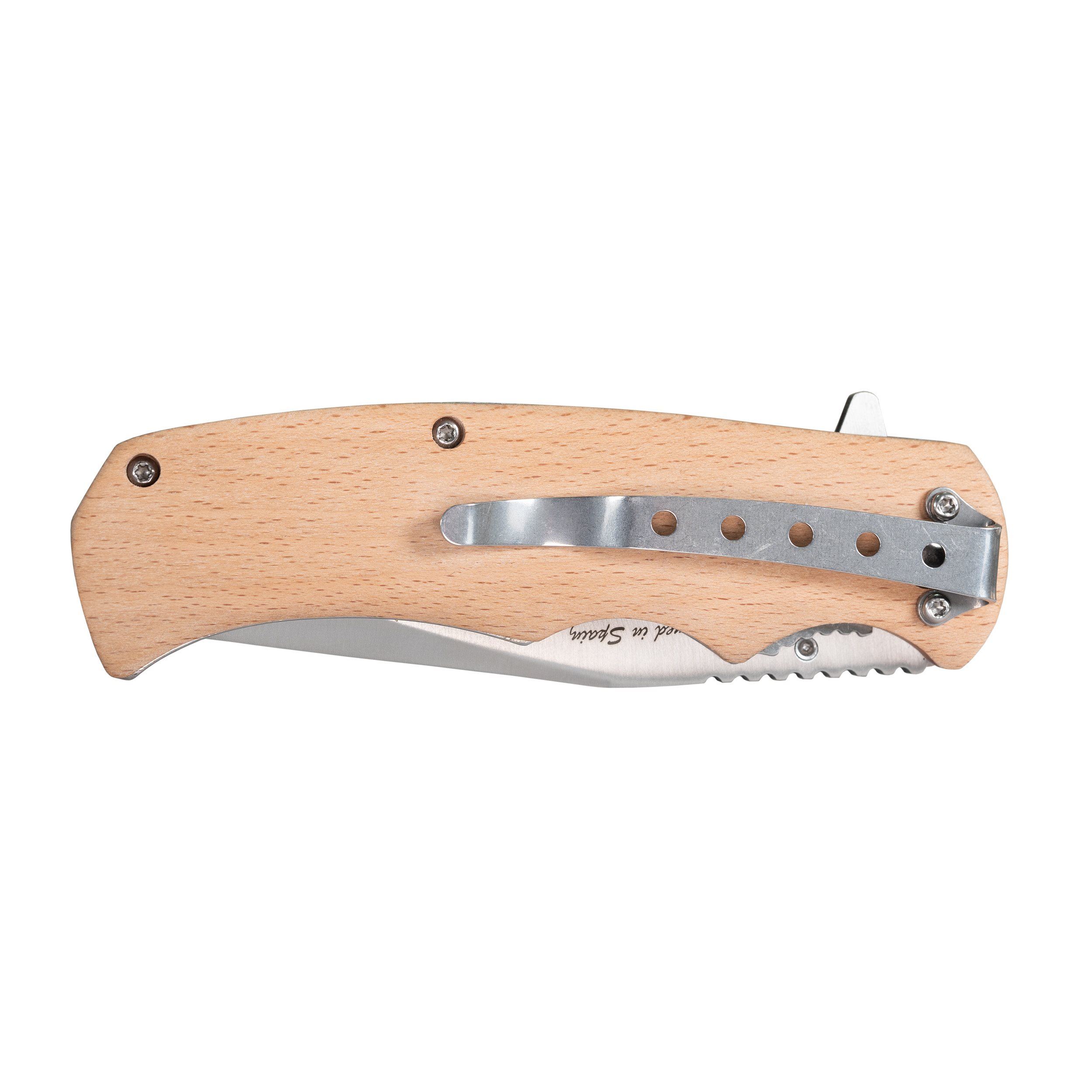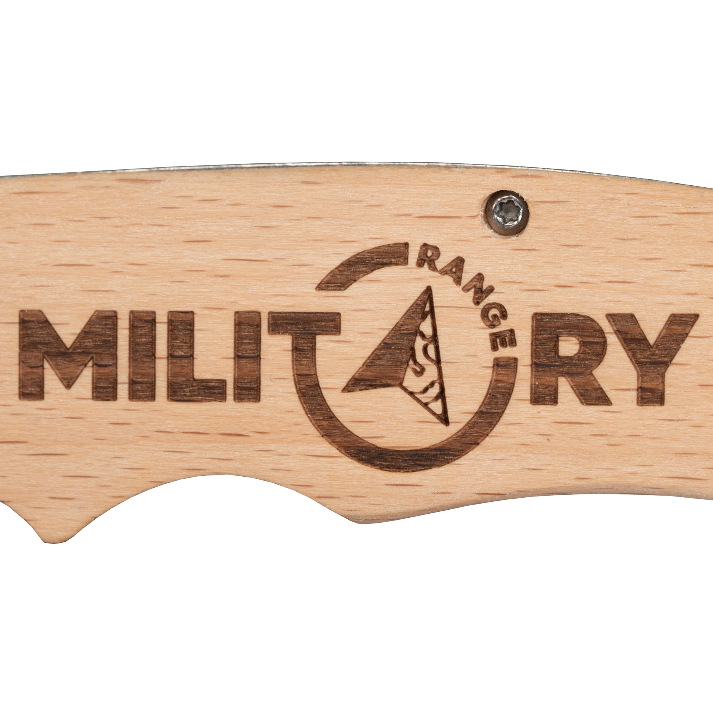 Coltello pieghevole con lama liscia, manico in legno naturale e incisione MILITARY RANGE. Dimensioni pratiche del coltello: sufficientemente grande per qualsiasi lavoro comune e allo stesso tempo sufficientemente piccolo da poter essere portato con sé senza problemi. Un coltello EDC perfetto a un prezzo ragionevole. La lama color argento opaco è dotata su un lato di un perno che consente l'apertura del coltello con una sola mano e di un flipper che serve allo stesso scopo: è sufficiente premere il flipper per aprire il coltello.