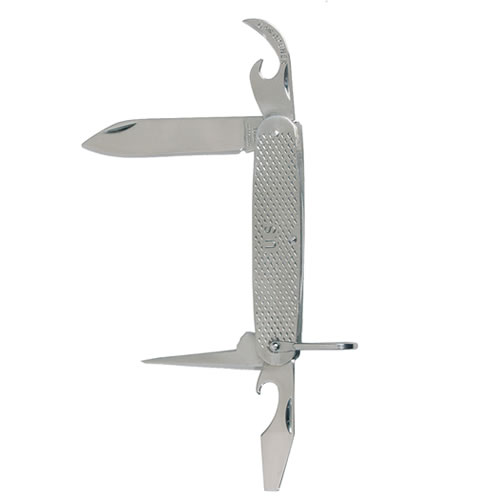 Coltello tascabile pieghevole secondo il modello dell'esercito americano. Dotazione del coltello: coltello, punteruola, apribottiglie. Passante per appendere. Ulteriori informazioni