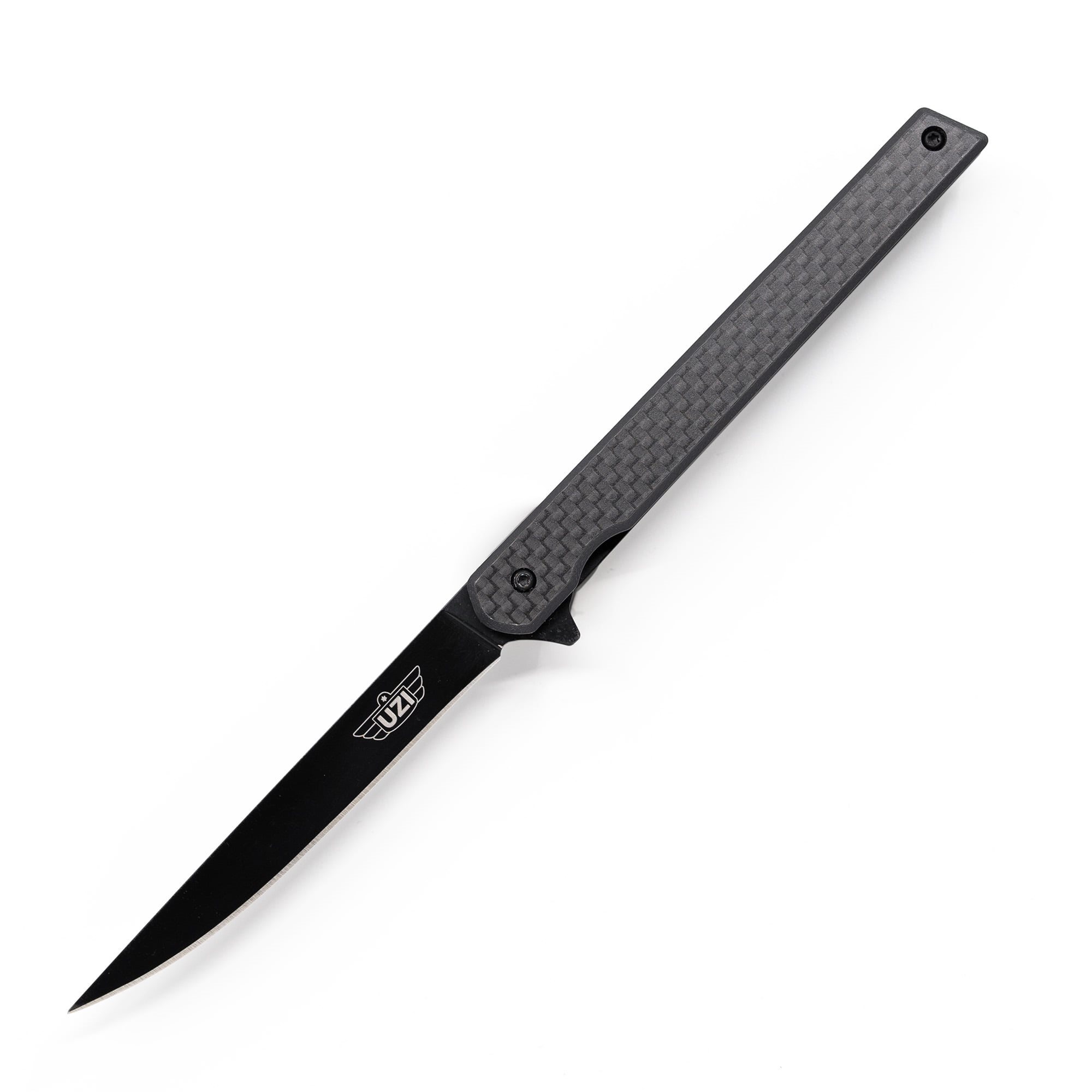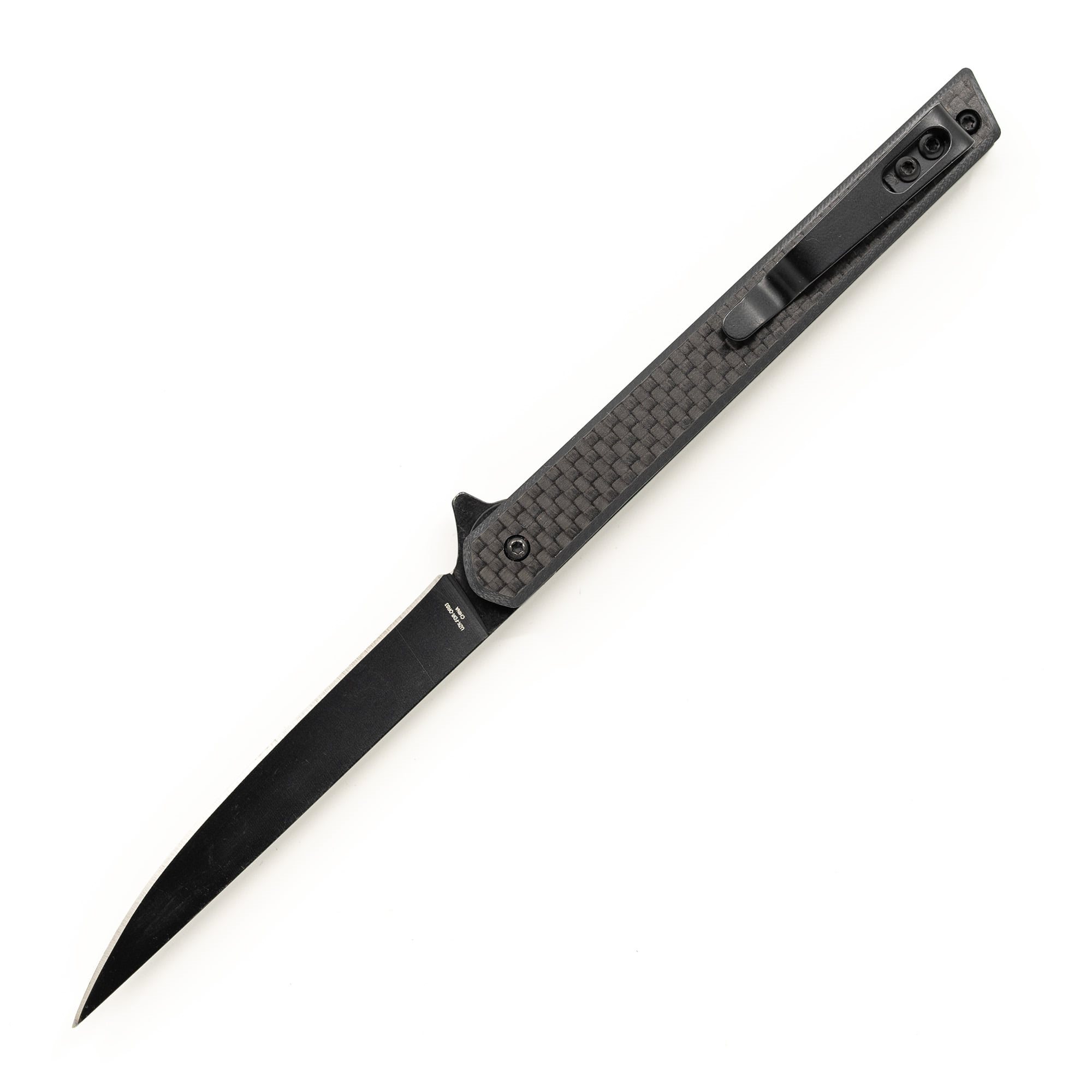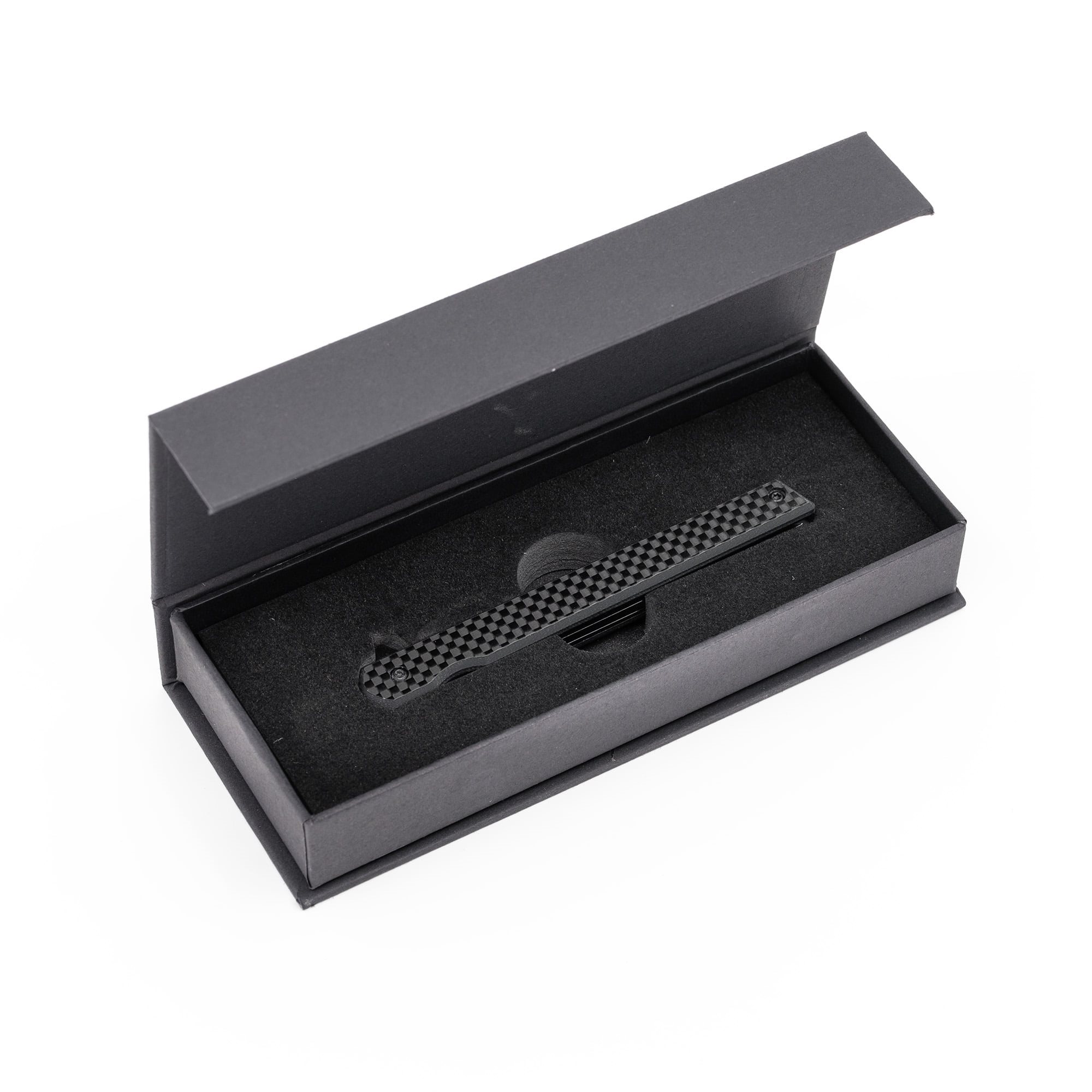 Coltello EDC leggerissimo con lama estremamente sottile, fornito in confezione regalo. La lama liscia è realizzata in acciaio inossidabile 440 con un rivestimento nero resistente ed è dotata di un flipper per facilitarne l'apertura. Quando è aperto, il coltello è bloccato da un affidabile fermo di sicurezza di tipo LinerLock. I manici del coltello sono realizzati in fibra di carbonio estremamente resistente e sono dotati di una clip metallica da tasca per un facile trasporto.