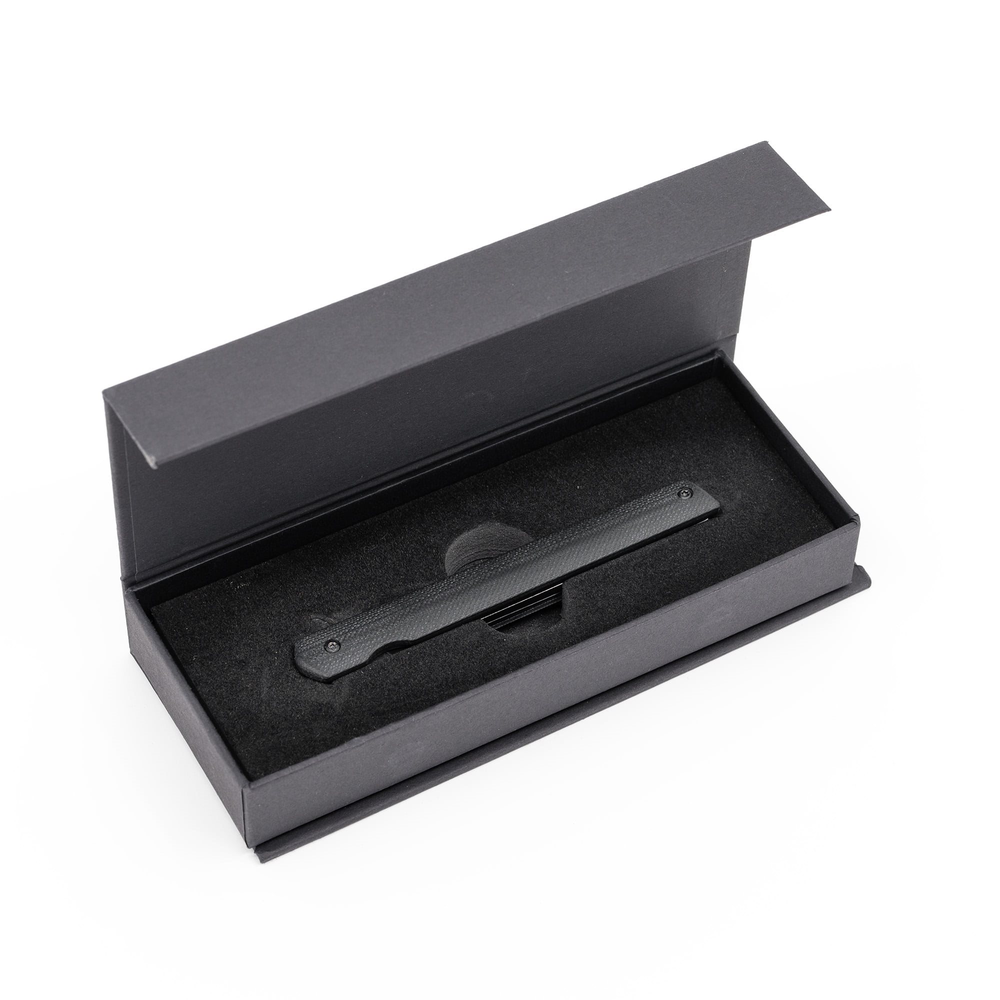 Leggerissimo coltello EDC con lama estremamente sottile, fornito in confezione regalo. La lama liscia è realizzata in acciaio inossidabile 440 con un caratteristico rivestimento nero ed è dotata di flipper per facilitarne l'apertura. Quando è aperto, il coltello è bloccato da un affidabile fermo di sicurezza di tipo LinerLock. I manici del coltello sono realizzati in resistente materiale G10 e sono dotati di una clip metallica da tasca per un facile trasporto.