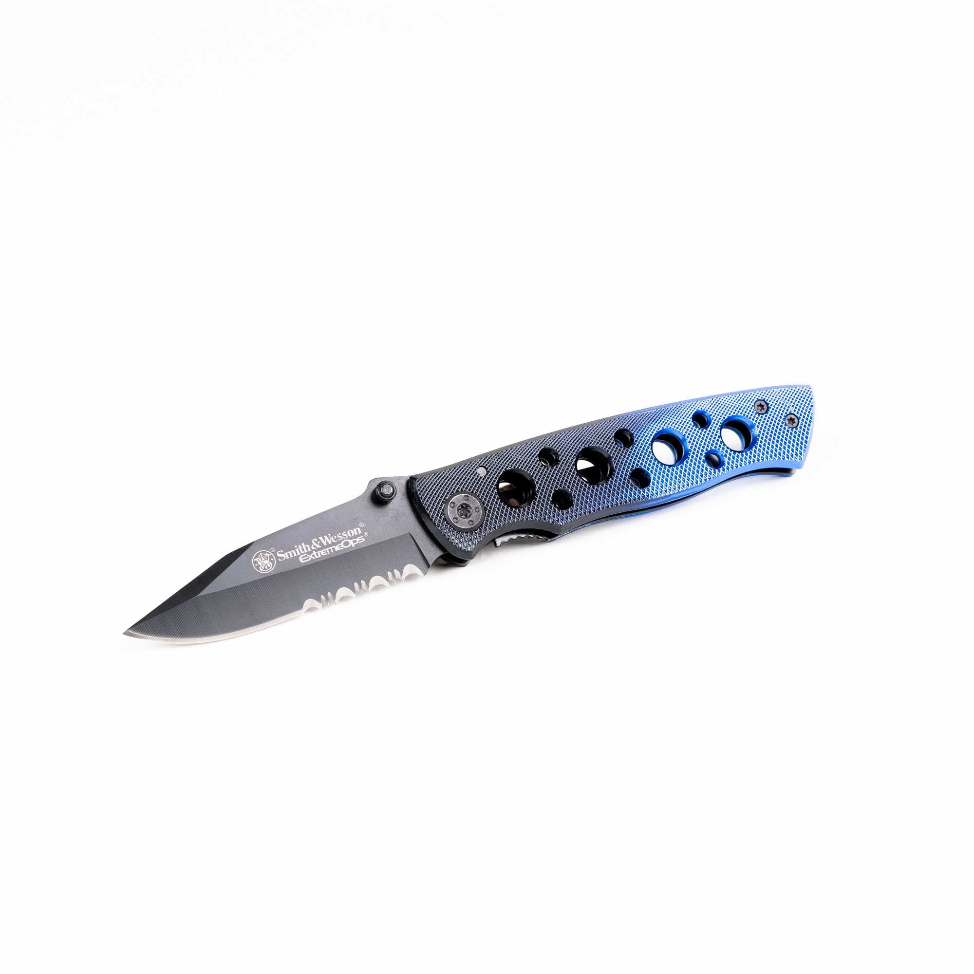 Coltello pieghevole Smith & Wesson CK111S con impugnatura in alluminio di colore blu-nero. Il coltello è dotato di blocco linerlock e clip per il trasporto alla cintura o ai pantaloni. Ideale per l'uso quotidiano. La lama del coltello è realizzata in acciaio 7Cr17 con durezza 56 - 58 HRC.