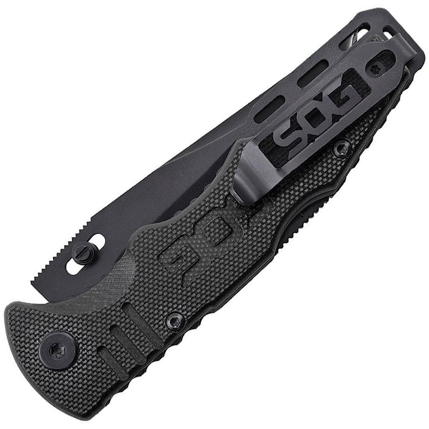 Coltello tascabile pieghevole di dimensioni ridotte del marchio SOG. È dotato di una lama con filo liscio, realizzata in acciaio inossidabile 8Cr13MoV con durezza 56-58 HRC. Il manico è piacevolmente sagomato e realizzato in resistente materiale G10. Ulteriori informazioni