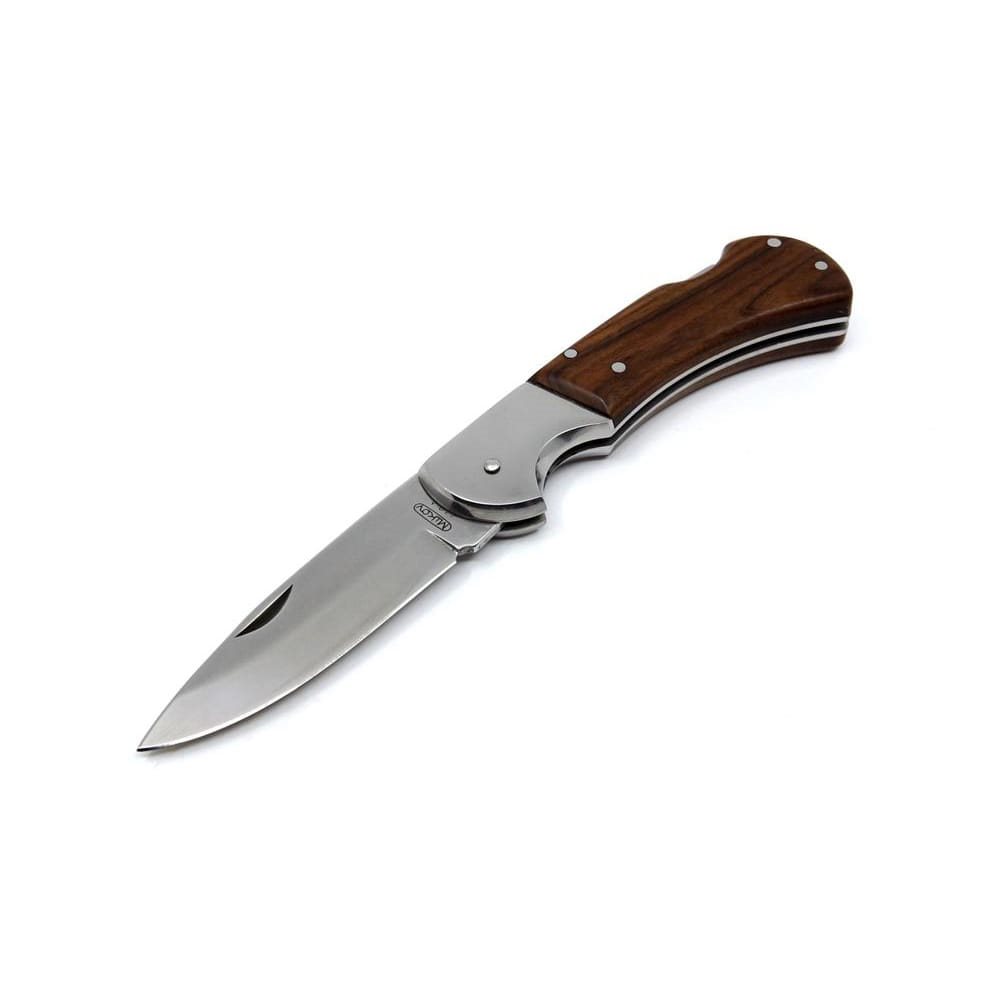 Il coltello da caccia HABLOCK ha una lama realizzata in acciaio inossidabile 440A di alta qualità con una durezza di 54-57 HRc. È dotato di un fermo di sicurezza sul dorso, che è uno dei fermi più sicuri per i coltelli pieghevoli. Il fermo garantisce il blocco della lama del coltello in posizione aperta e neutralizza il rischio di lesioni causate dalla sua chiusura spontanea. Per il corretto funzionamento del fermo è necessario che il coltello sia dotato di una molla robusta, pertanto il suo funzionamento può risultare più rigido.