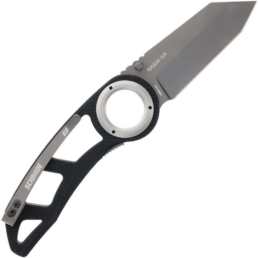 Coltello dall'aspetto insolito, ideale per il trasporto EDC. Il coltello è dotato di una lama liscia, realizzata in acciaio inossidabile AUS-8 di alta qualità con finitura grigio opaco. Il manico è realizzato in materiale G10. Ulteriori informazioni