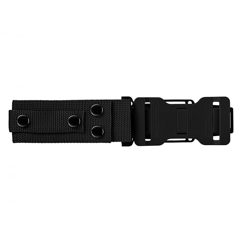 Gli accessori del coltello includono anche un fodero in plastica autobloccante, una cinghia in nylon stretta e larga con bottoni a pressione e una piastra di montaggio in plastica con forcella di sicurezza. Il coltello può essere trasportato in tre modi: