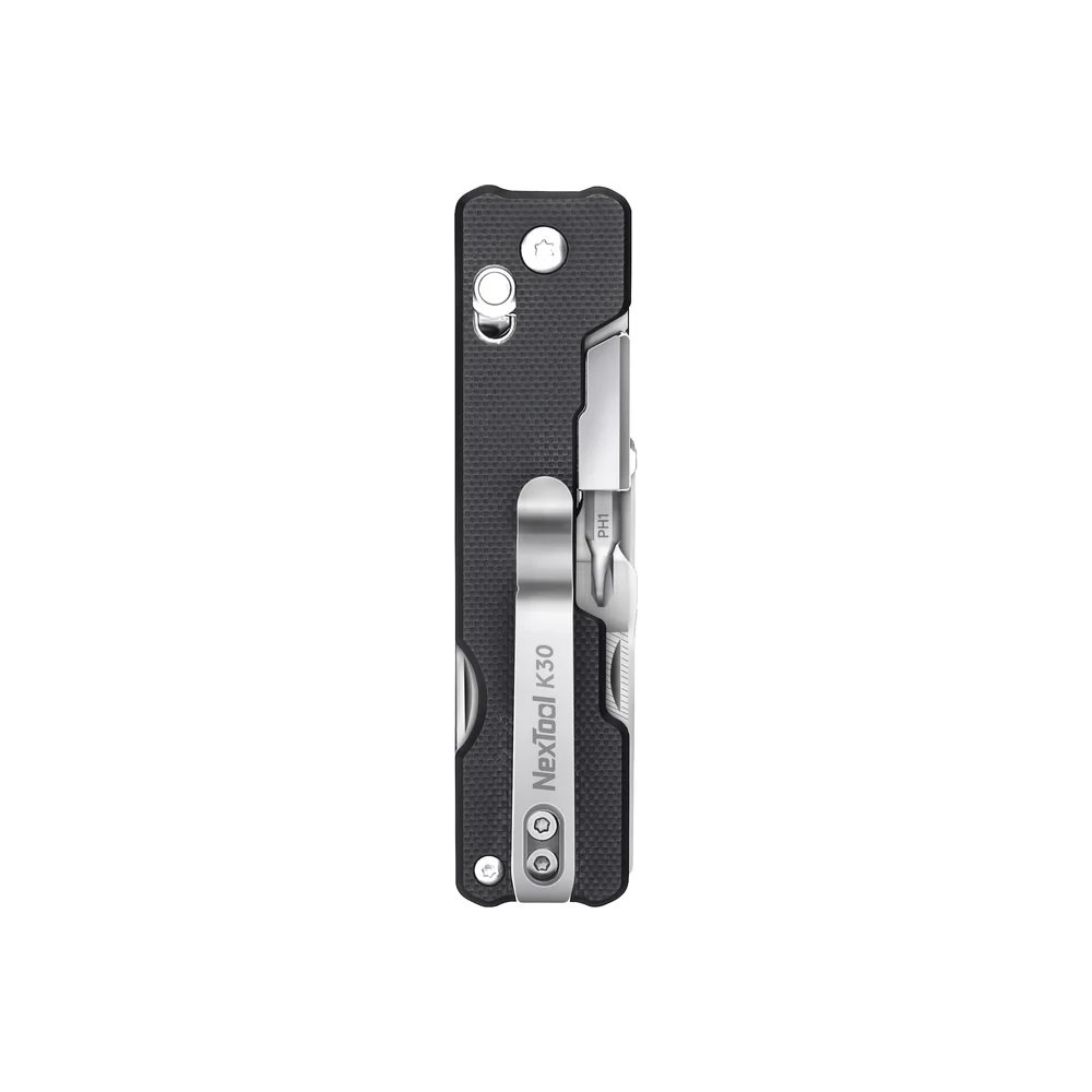 Il modello K30 è progettato per il moderno uso quotidiano e, oltre al coltello, offre anche forbici, apribottiglie, leva, pinzetta, lima, infilatore e un sistema magnetico di bit per cacciavite intercambiabili. Il migliorato NEX Scissors System 2.0 con lama seghettata offre un taglio più forte e stabile, permettendo di affrontare le attività quotidiane senza cambiare utensili.