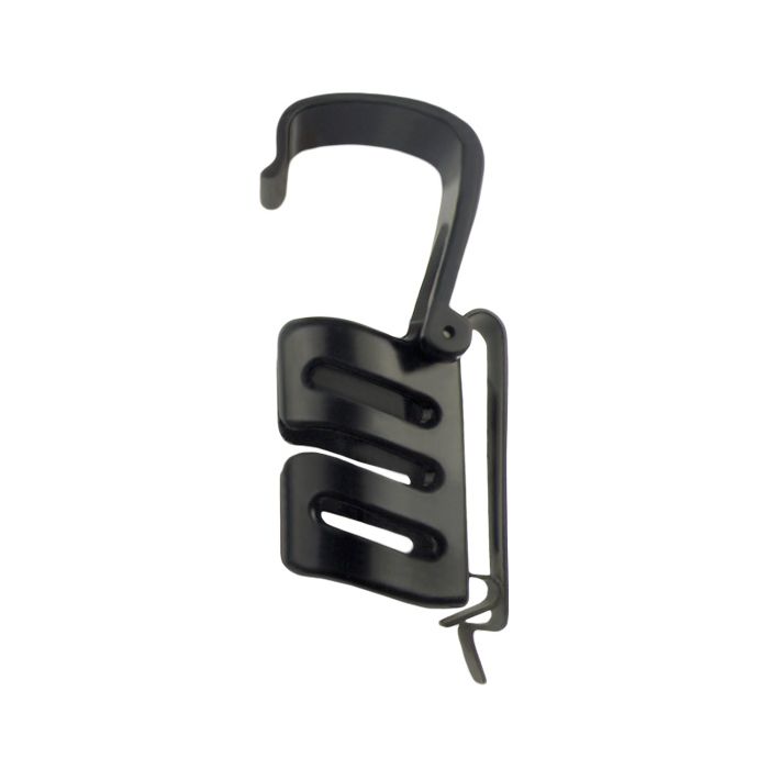 La custodia è dotata di una clip metallica flessibile che consente di fissarla rapidamente alla cintura (senza bisogno di slacciarla) o al giubbotto tattico. In alternativa, può essere fissata anche al sistema di trasporto M.O.L.L.E.