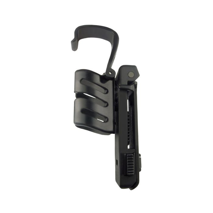 Questo modello di fibbia a sgancio rapido piatta consente di agganciare rapidamente la custodia alla cintura con una sola mano e senza doverla slacciare. Rispetto alla fibbia di fissaggio UBC-01, la distanza tra la cintura e la custodia è minore quando si utilizza questo tipo di fibbia. La custodia può essere ruotata di 360 gradi rispetto alla cintura in 16 posizioni bloccabili. Può anche essere fissata al sistema di trasporto MOLLE MIL STD.