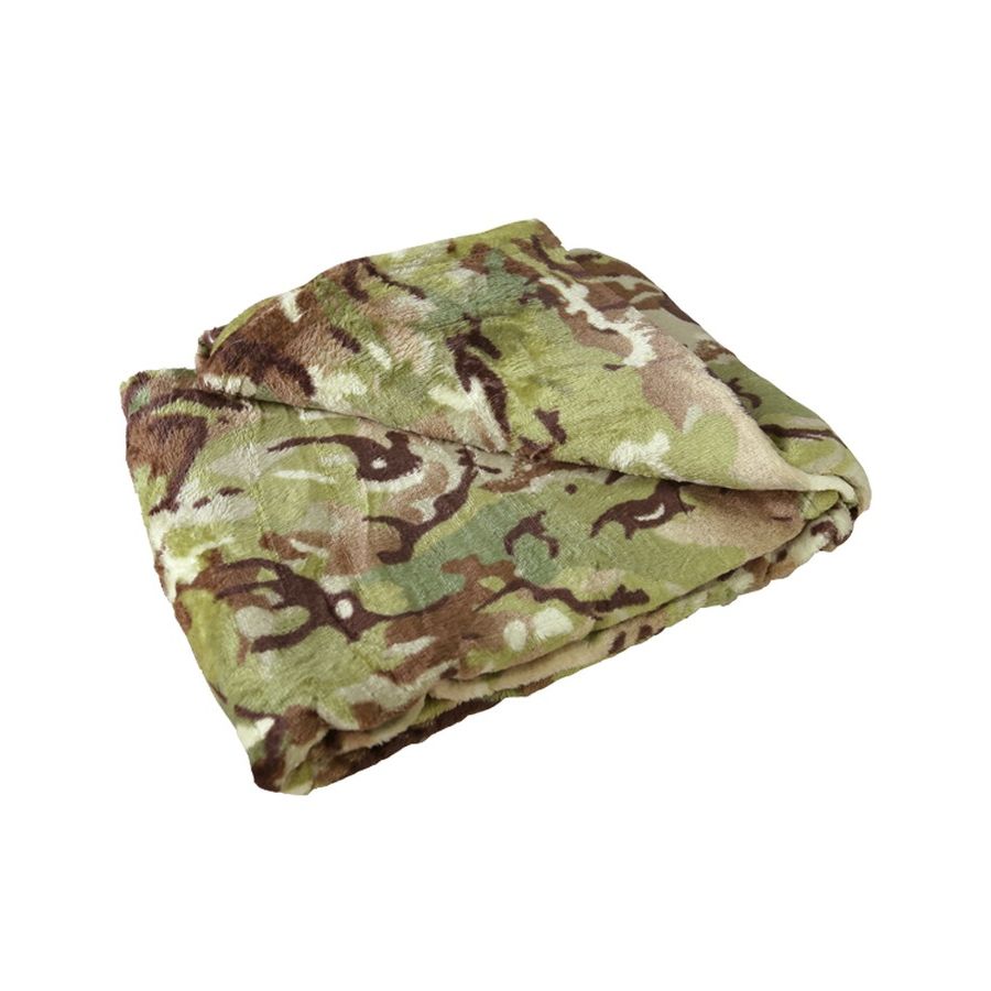 Coperta confortevole, morbida e leggera in tessuto pile con motivo mimetico BTP. Dimensioni: 150 x 100 cm.