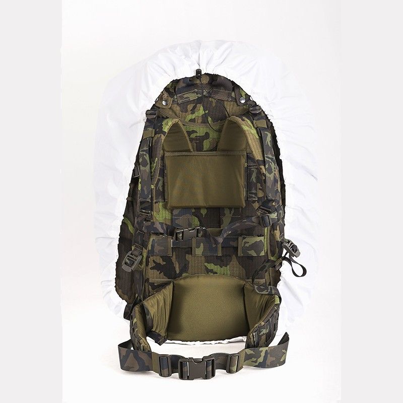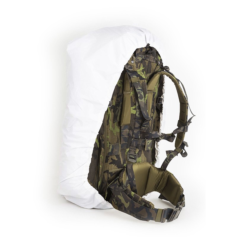 Copertura mimetica per condizioni invernali adatta a zaini con volume di 60 litri. La copertura offre una protezione aggiuntiva contro gli agenti atmosferici esterni.