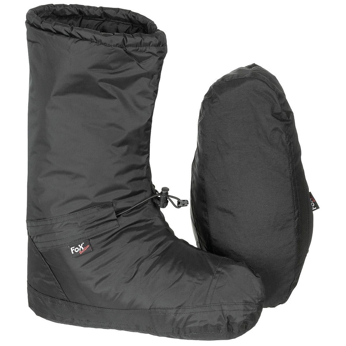 Possono essere utilizzati all'interno di un sacco a pelo o come calzature da indossare in tenda o in baita. Sono comprimibili e leggeri. Offrono un eccellente isolamento, morbidi e caldi. Sono dotati di un cordoncino elastico con fermo all'altezza della caviglia. Taglia unica - lunghezza interna del piede circa 30 cm.