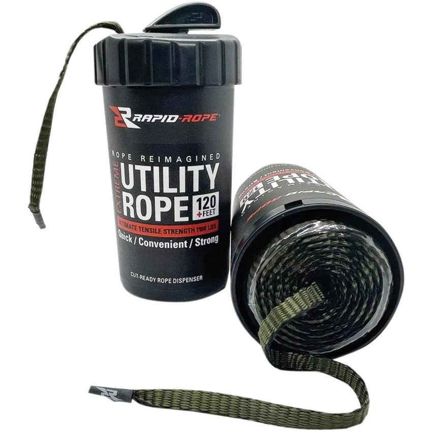 Tre metri di corda estremamente resistente in una custodia estremamente resistente, dotata di taglierina integrata e che può essere comodamente riposta anche in uno zaino di piccole dimensioni. La corda è testata per un carico fino a 1100 lb, che corrisponde a circa 500 kg. La corda può essere estratta rapidamente con una sola mano e quindi utilizzata.