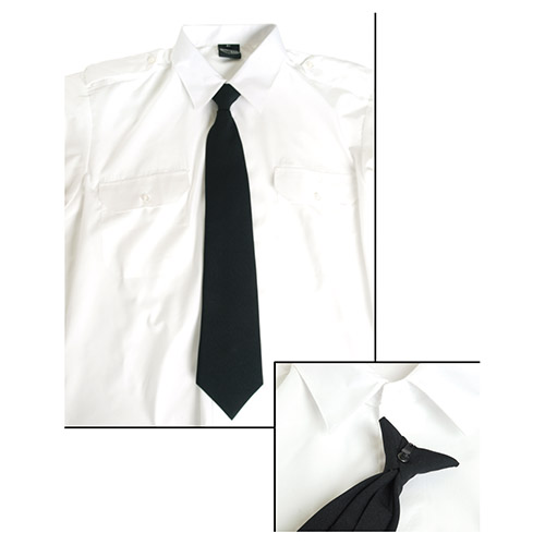 Cravatta nera adatta, ad esempio, per addetti alla sicurezza, forze dell'ordine, ecc. La chiusura con bottone garantisce una vestibilità comoda senza stringere.