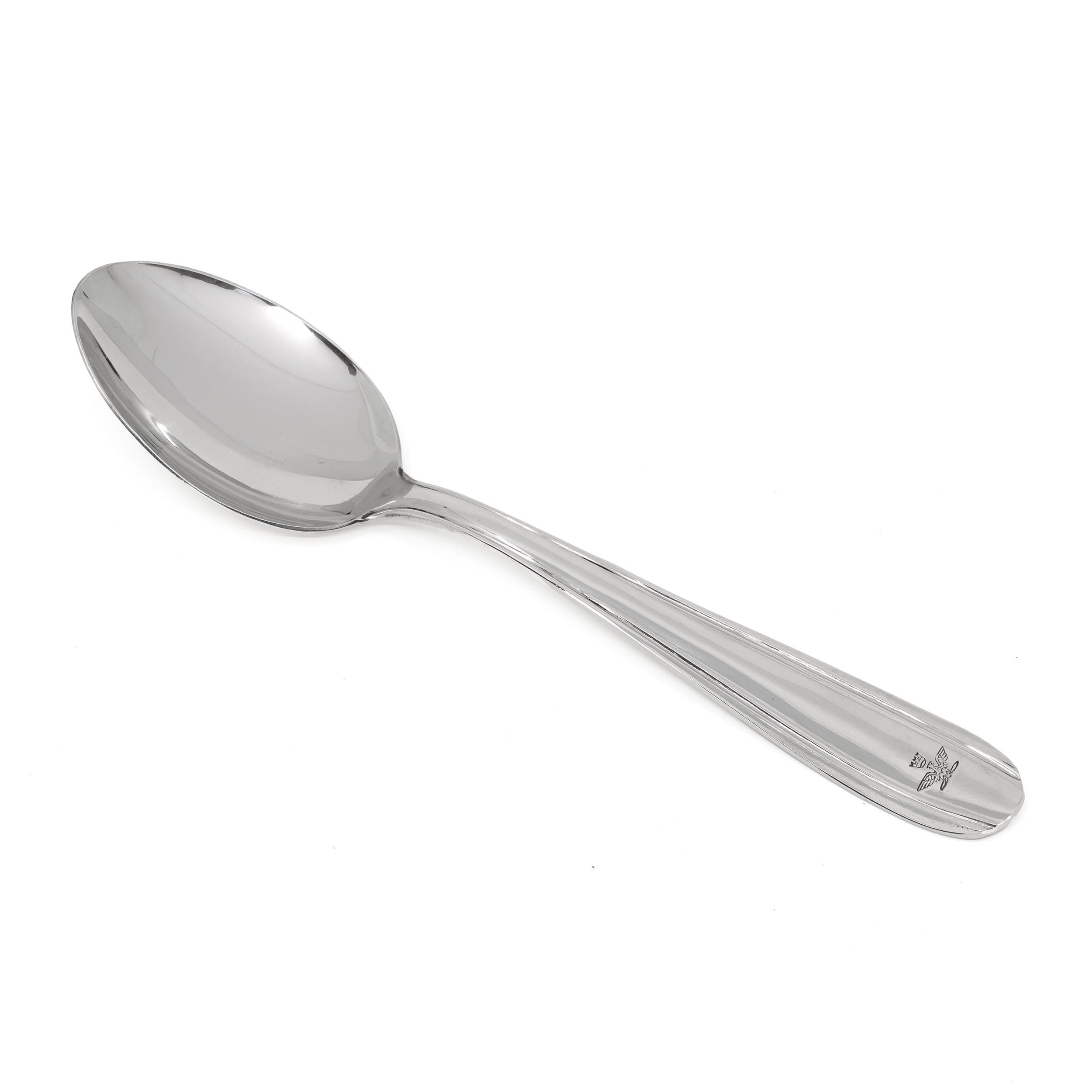 Grande cucchiaio da cucina Inoxriv con superficie lucida. Ottimamente sagomato ed equilibrato, piacevolmente pesante.
