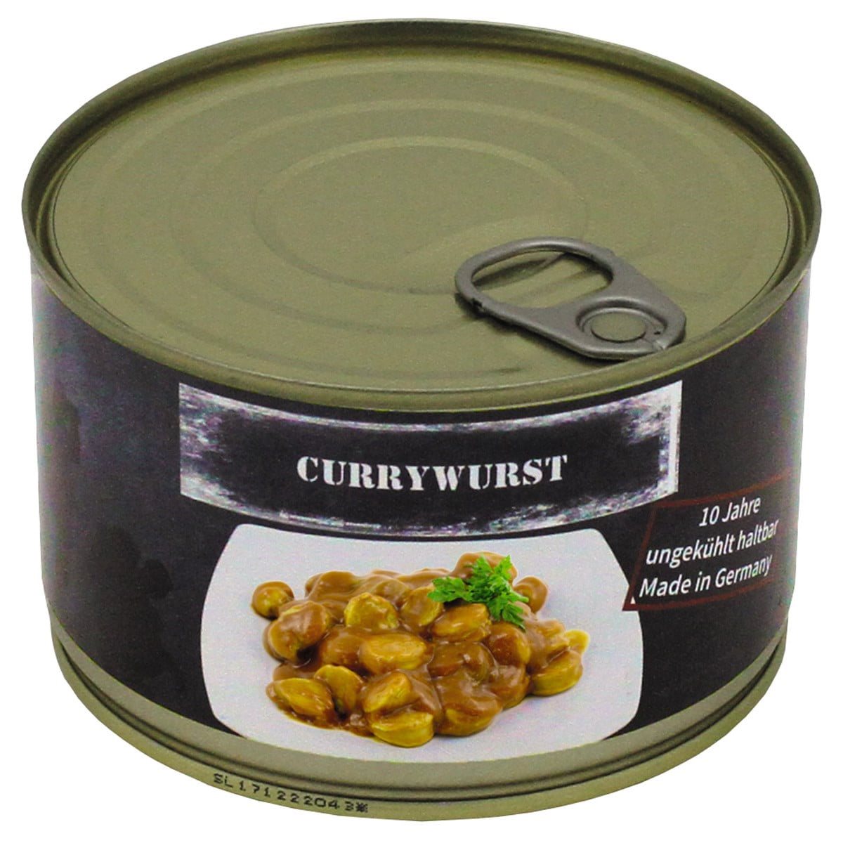 Tradizionale salsiccia tedesca al curry in salsa di pomodoro, prodotta artigianalmente con ingredienti locali. Il prodotto non contiene lattosio né glucosio, senza carne separata meccanicamente. 400 g: 75% carne, 25% salsa di pomodoro. Durata di conservazione: non refrigerato 10 anni dalla data di produzione.