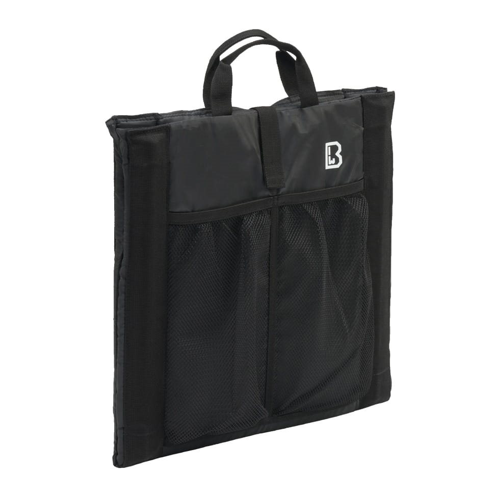 Pratico cuscino realizzato in robusto poliestere ad alta resistenza meccanica. Isola perfettamente dal freddo del terreno la parte posteriore e una parte della schiena. La sua struttura è pieghevole e la larghezza può essere regolata tramite cinghie laterali regolabili. Per un facile trasporto è possibile utilizzare semplici maniglie in tessuto. Entrambe le parti del cuscino possono essere fissate con cinghie in velcro. Il cuscino è dotato di due scomparti in rete, ideali per riporre bottiglie d'acqua o altri oggetti di dimensioni simili.