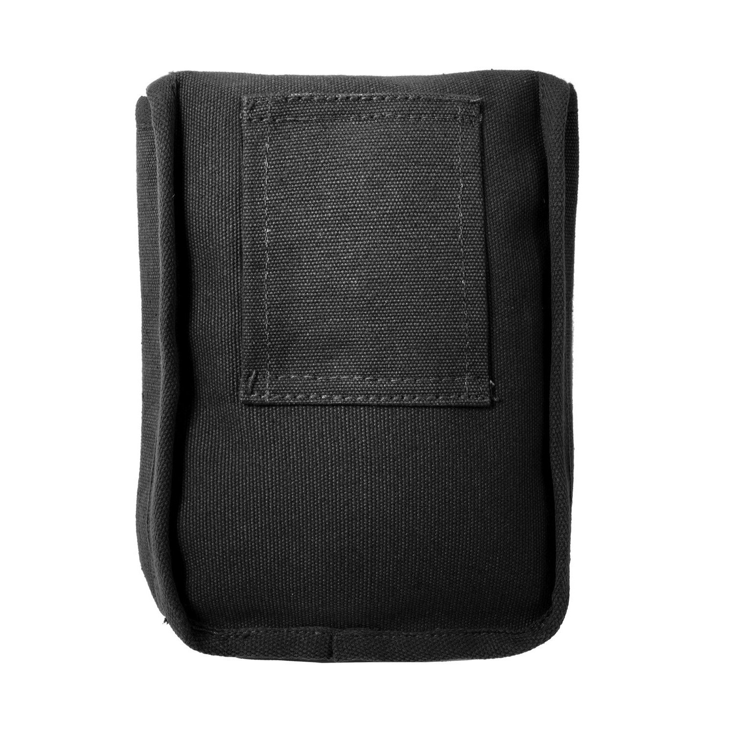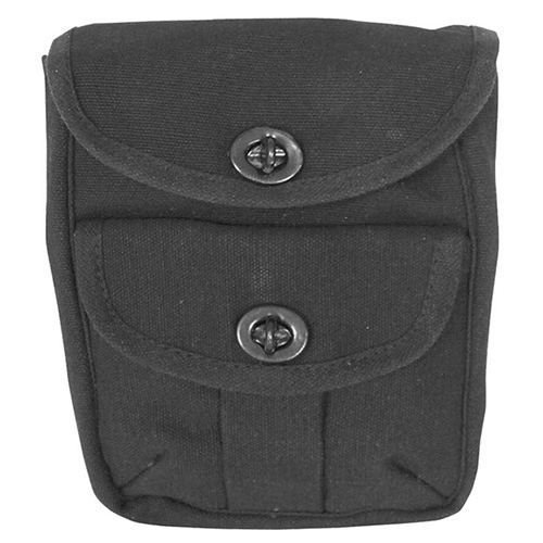Custodia in tela di cotone resistente con due tasche. Chiusura con chiusure metalliche. Sul retro è presente un passante per il fissaggio alla cintura.