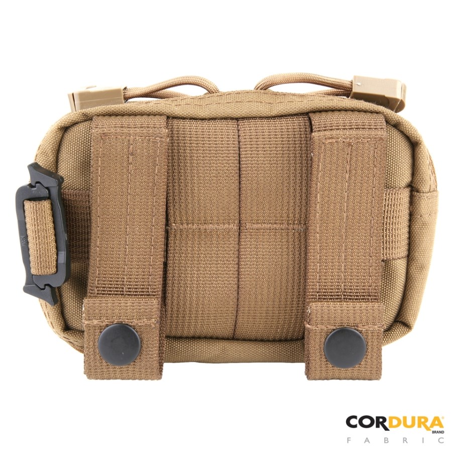 Piccola custodia progettata principalmente per il trasporto di piccoli dispositivi elettronici. La tasca frontale, adatta ad esempio per un telefono cellulare, è dotata di chiusura con patta in velcro, rinforzata esternamente in plastica e foderata in tessuto felpato per ridurre il rischio di graffi. La tasca principale è dotata di chiusura con cerniera asimmetrica a doppio cursore, è imbottita e foderata. Grazie alle sue dimensioni, può essere utilizzata per riporre il rischio di graffi. La tasca principale si chiude con una cerniera asimmetrica con due cursori, è imbottita e foderata. Grazie alle sue dimensioni, può essere utilizzata per una fotocamera digitale compatta, un navigatore GPS, ecc. Inoltre, contiene due scomparti adatti, ad esempio, per schede di memoria, batterie di ricambio o un panno per la pulizia. La custodia è progettata per essere fissata alla cintura o può essere utilizzata su piattaforme compatibili con PALS/MOLLE o appesa verticalmente su una superficie adeguata.
