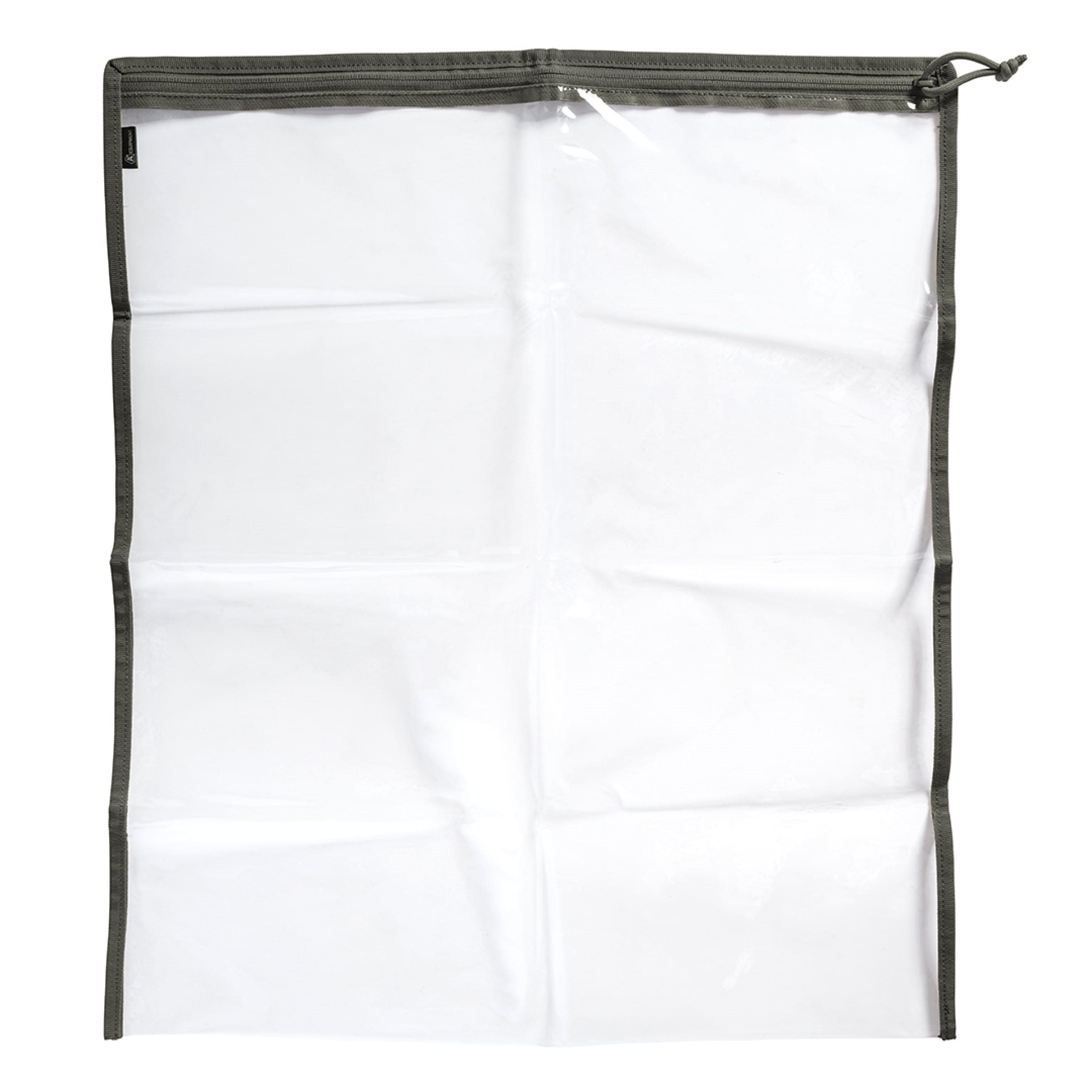 Pratica custodia pieghevole progettata per il trasporto di mappe. La custodia è realizzata in una combinazione di PVC trasparente e poliestere con trattamento idrorepellente DWR-TECH e la chiusura è assicurata da una cerniera YKK® con tiretto.
