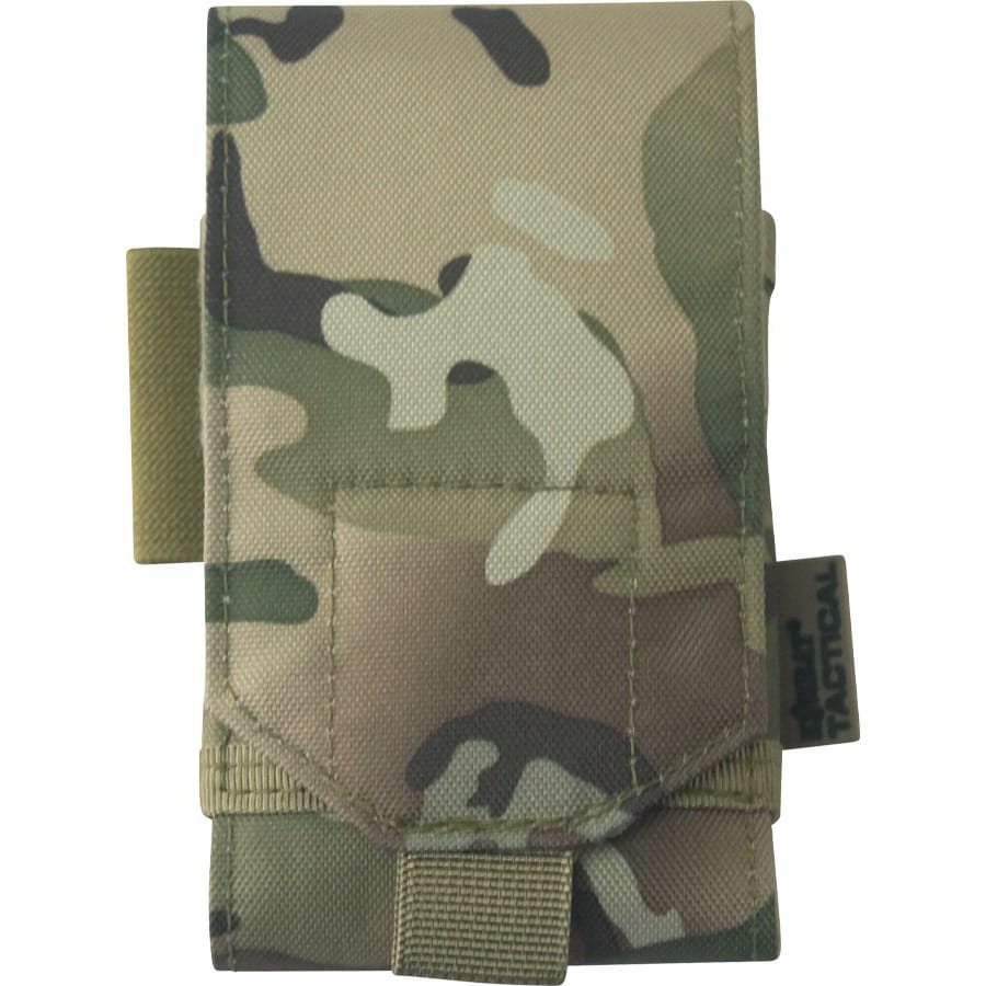 Discreta custodia compatibile con MOLLE/PALS, progettata per il trasporto di telefoni cellulari o dispositivi di dimensioni simili. È realizzata in resistente poliestere 600D Tac-Poly con imbottitura interna e rivestimento esterno che previene graffi indesiderati sui dispositivi elettronici più sensibili. La patta della custodia è fissata con velcro. Sul lato della custodia è presente un passante elastico per inserire una matita o altri strumenti di scrittura.