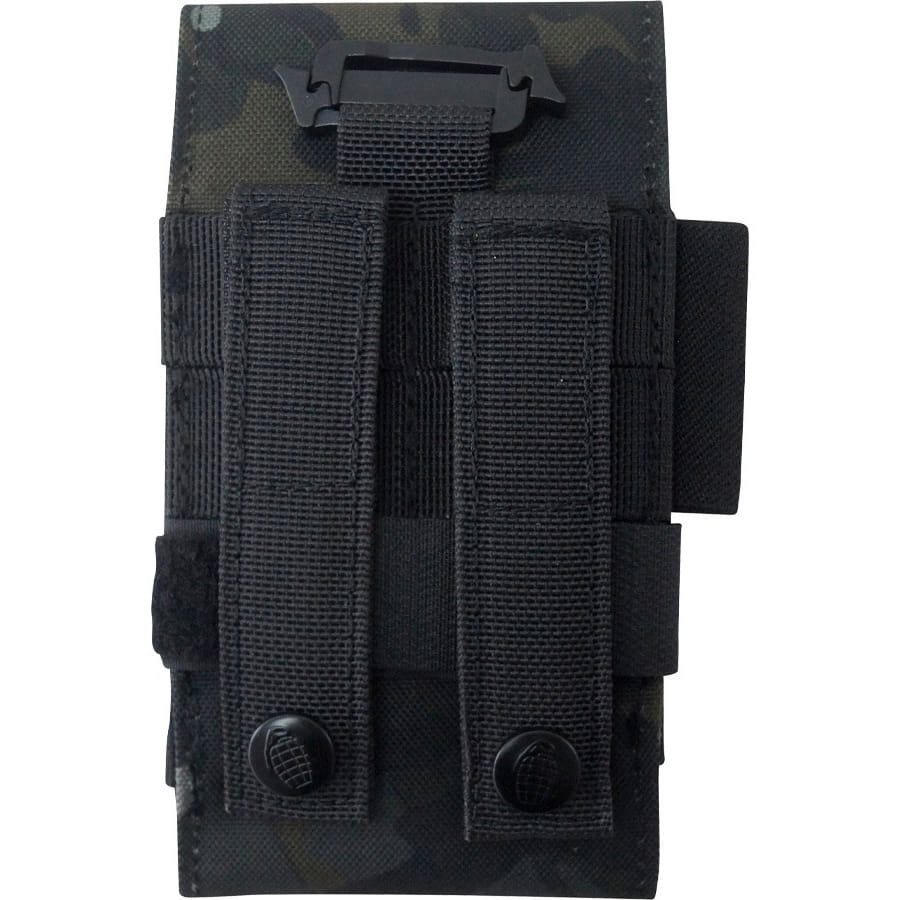 Discreta custodia compatibile con MOLLE/PALS, progettata per il trasporto di telefoni cellulari o dispositivi di dimensioni simili. È realizzata in resistente poliestere 600D Tac-Poly con imbottitura interna e rivestimento esterno che previene graffi indesiderati sui dispositivi elettronici più sensibili. La patta della custodia è fissata con velcro. Sul lato della custodia è presente un passante elastico per inserire una matita o altri strumenti di scrittura.