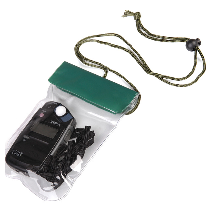 Custodia impermeabile in plastica con cordino da appendere al collo. Dimensioni dello spazio utile della custodia: circa 16,5 x 12,5 cm. Accessorio pratico per canoisti, velisti e marinai.