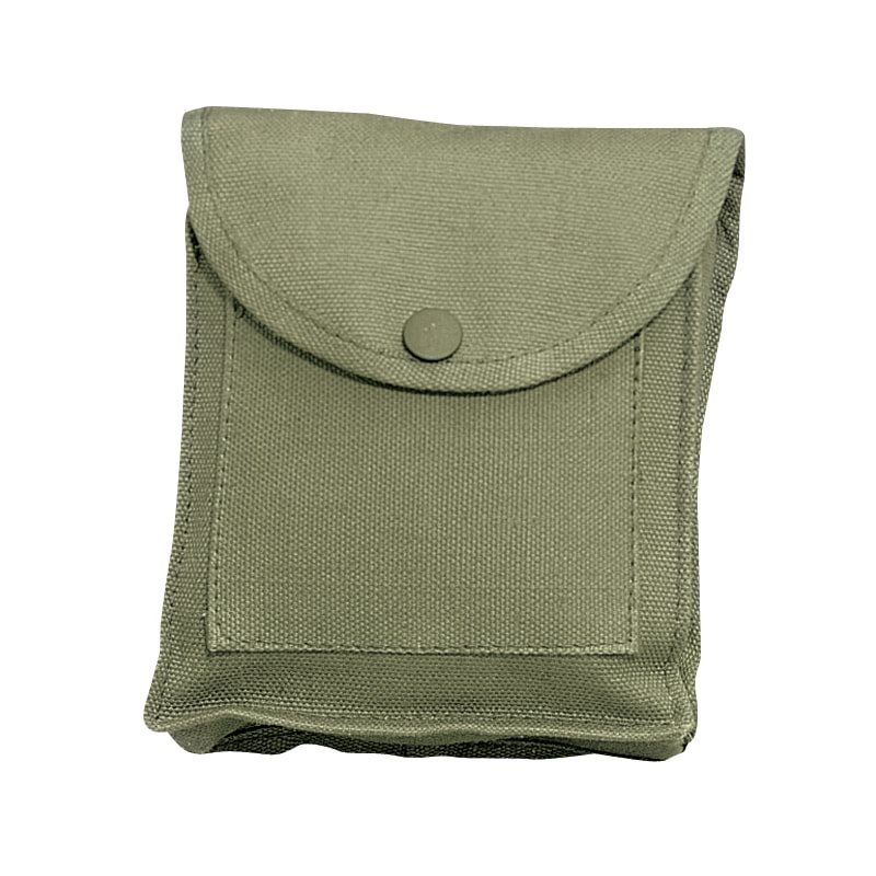 Custodia in tela di cotone resistente, chiusura con bottone a pressione. Sul retro è presente un passante per il fissaggio alla cintura.