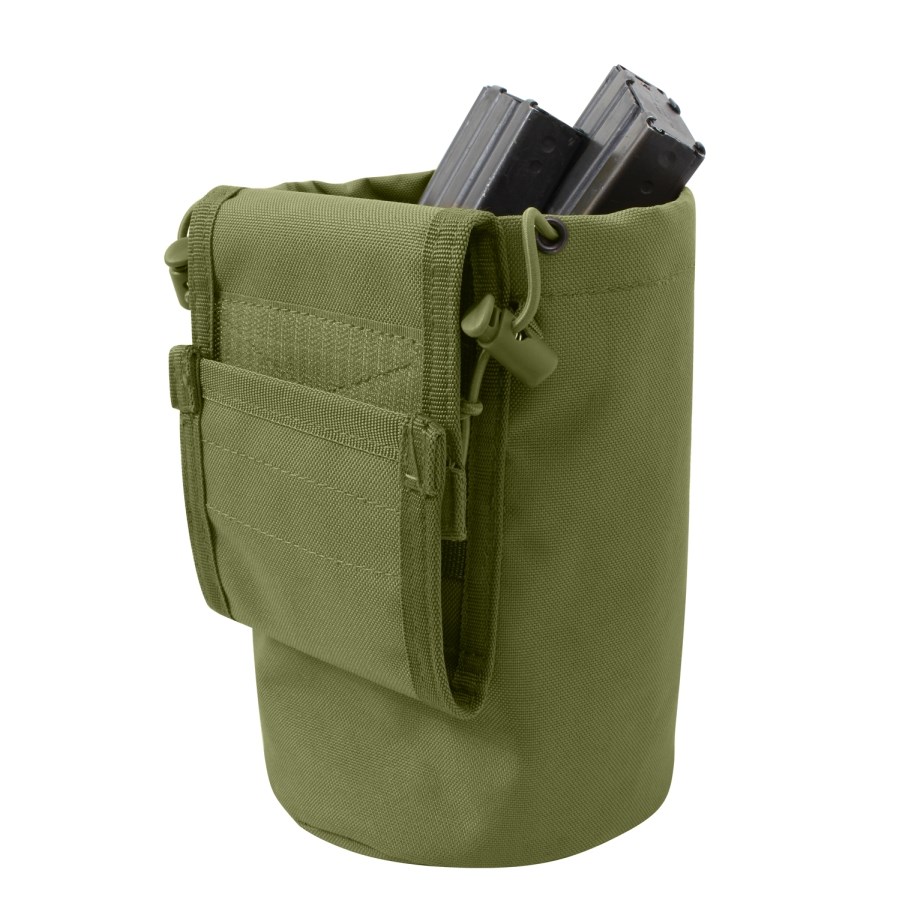 Custodia pieghevole/arrotolabile per caricatori vuoti - espulsore. Il bordo superiore può essere chiuso con un cordino elastico e una patta con chiusura in velcro. Cinghie MOLLE per il fissaggio all'equipaggiamento.