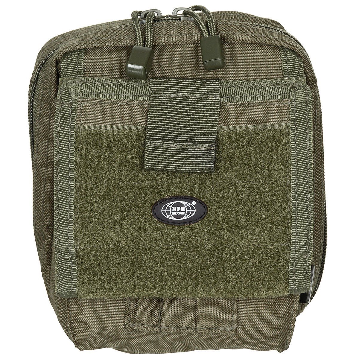Sul lato anteriore è presente una patta pieghevole, all'interno della quale si trovano due finestre trasparenti per documenti di identità; all'esterno è presente un pannello con chiusura in velcro