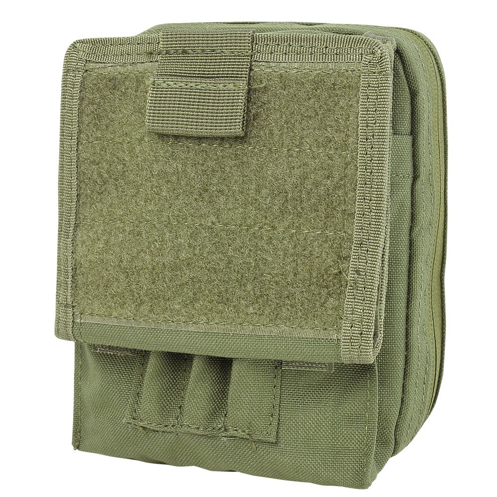 Sul lato anteriore è presente una patta pieghevole, all'interno della quale si trovano due finestre trasparenti per documenti di identità, mentre all'esterno è presente un pannello con chiusura in velcro