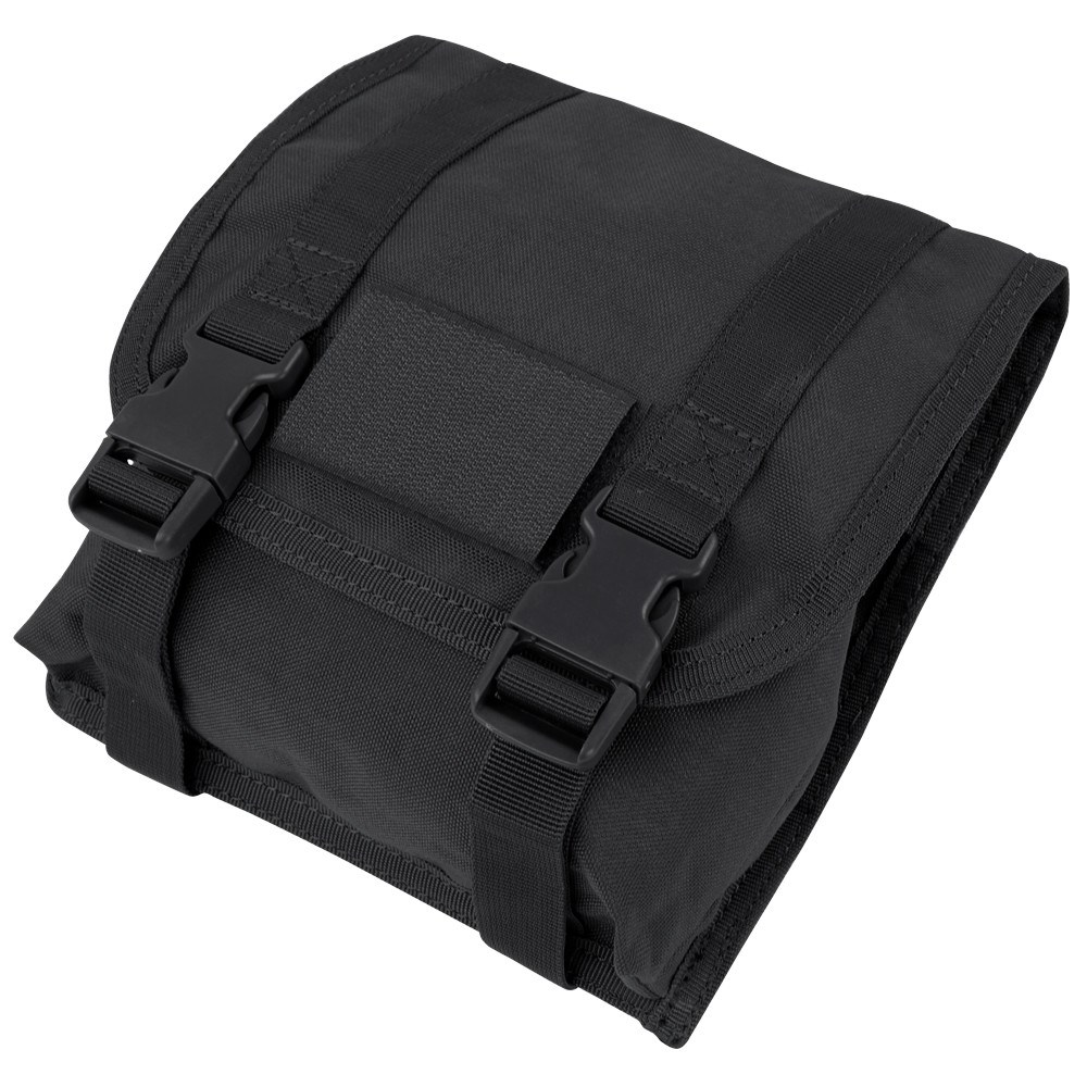 Grande custodia universale da agganciare al sistema MOLLE. Può contenere, ad esempio, 6 caricatori M4. Grazie al cordino elastico, la custodia può essere compressa fino a diventare piatta.