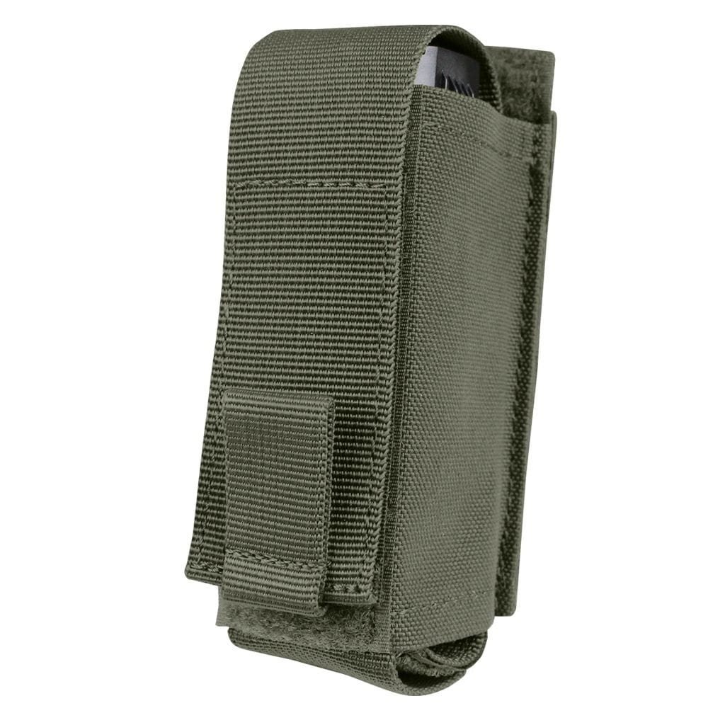 Custodia che garantisce un rapido accesso allo spray trasportato. Grazie alla cinghia posteriore lunga circa 10 cm, la custodia è compatibile con il sistema di aggancio modulare MOLLE/PALS, quindi può essere facilmente fissata a una vasta gamma di attrezzature tattiche come portapannelli, chest rig, zaini, ecc. La chiusura della custodia è garantita da una patta regolabile con linguetta. La patta è fissata con velcro e, se necessario, può essere staccata e non utilizzata. Il fondo elastico della custodia si adatta facilmente alle dimensioni dell'attrezzatura inserita.