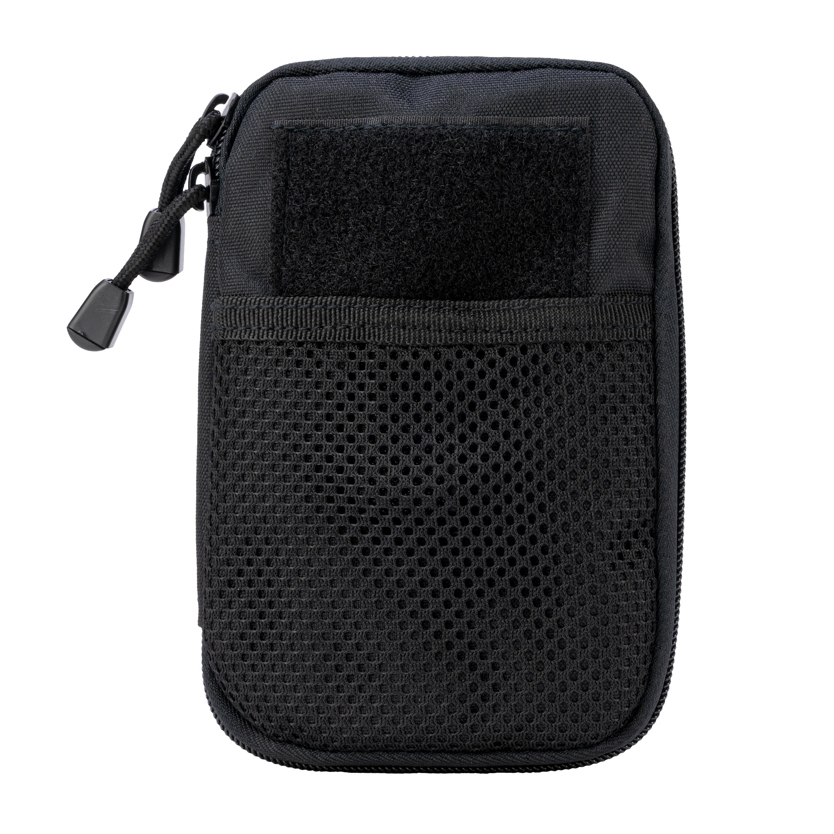Custodia universale e funzionale con due modalità di trasporto. Sul retro, nella parte superiore, è presente una maniglia per il trasporto a mano, costituita da una cinghia che si collega al sistema MOLLE. La custodia può quindi essere fissata al vostro equipaggiamento con attacco MOLLE. La custodia è dotata di numerose tasche, scomparti, pannello ID trasparente per l'inserimento di documenti e cinghia elastica con diversi passanti.