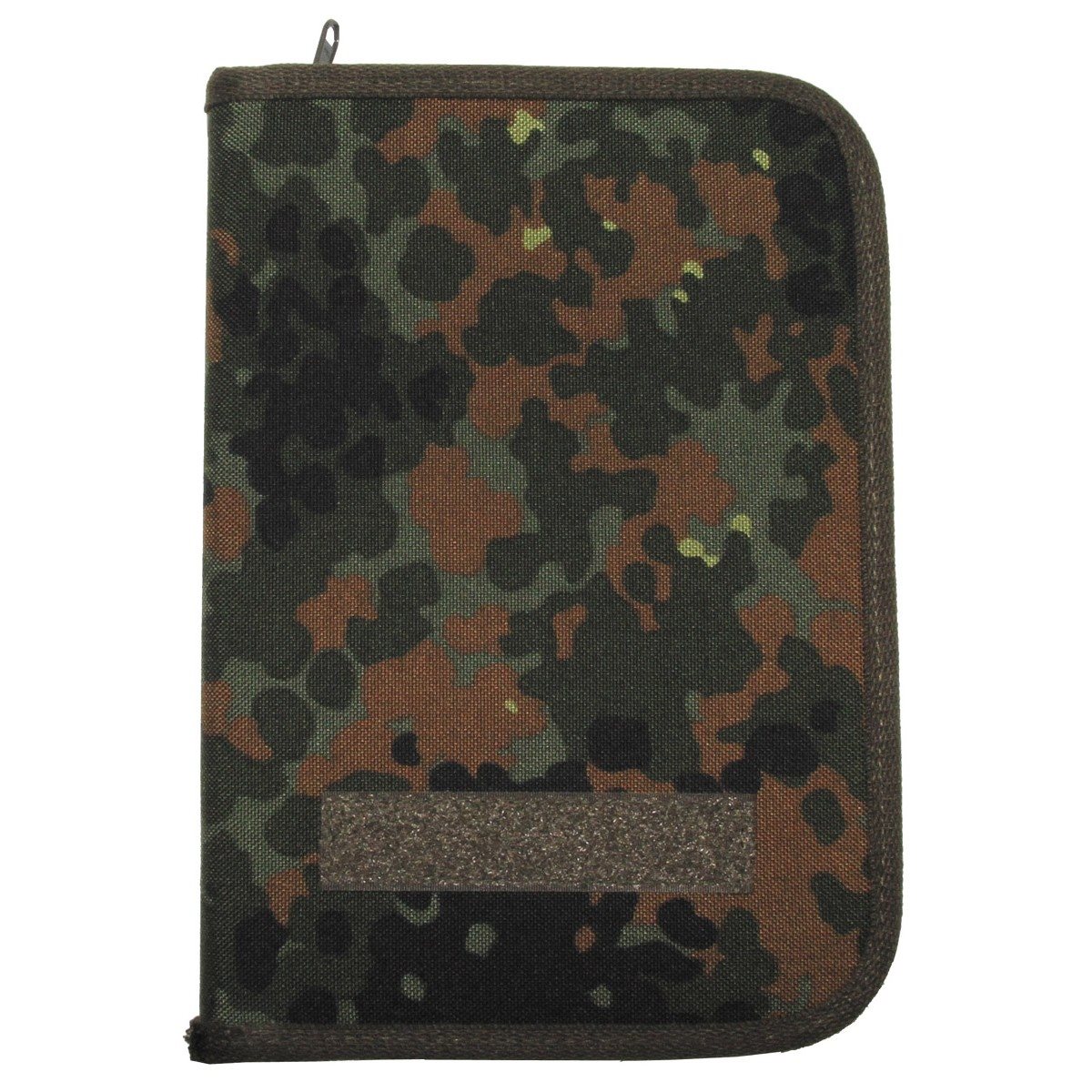 Portadocumenti. Nella parte sinistra sono presenti due tasche con cerniera (una delle quali in rete), scomparti per carte e un passante per penna. Nella parte destra è presente una tasca per blocco A5. Chiusura con cerniera su tutto il perimetro, striscia con velcro sul lato esterno. Materiale: nylon.