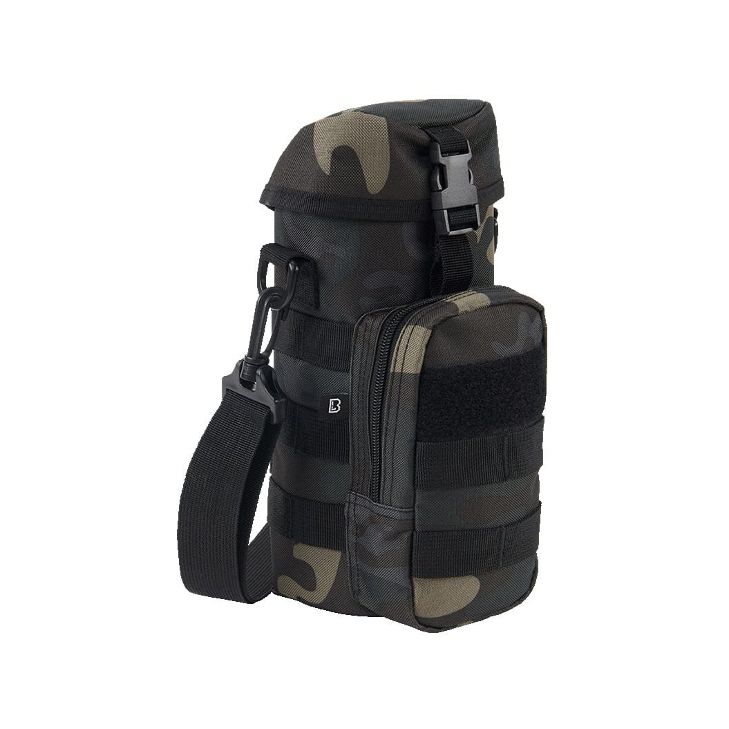 Custodia universale per bottiglie o oggetti simili di forma rotonda. Realizzata in resistente poliestere 600D. Può essere fissata al sistema MOLLE tramite attacchi PALS o agganciata ovunque tramite moschettone, oppure può essere trasportata a tracolla utilizzando la cinghia in dotazione.